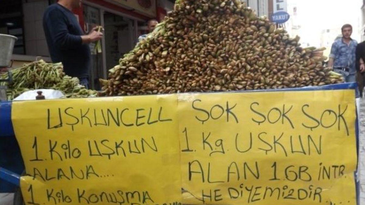 Van’da yüksek kesimlerde doğal olarak yetişen ve ‘yayla muzu’ olarak bilinen uçkun bitkisini satan uyanık satıcının yöntemi, görenleri şaşırttığı kadar güldürüyor.Sanat Sokağı’nda uçkun bitkisini satan seyyar satıcı Reşit Gil, ilginç yöntemiyle herkesin dikkatini çekiyor. Ekşimsi tadıyla vatandaşların yoğun ilgisini gören uçkun bitkisinin kilosunu 5 TL’den satan Reşit Gil, ilkbahar aylarında çıkan uçkunu satarak geçimini sağladığını belirtti. Gil, “Yayla muzunun kilosunu 5 TL’den satıyoruz. On günlük bir süresi kaldı, artık gelecek yıla kadar bir daha yayla muzu göremezsiniz. Tezgahımıza astığımız pankartlar ve yazılar reklam amaçlı olduğundan sadece müşterilerin ilgisini çekmek için yaptık. Ekmek davası bizde mecbur evimize gittiğimizde elimiz boş dönmemek için yapıyoruz bu işi’’ dedi.Müşterilerin yoğun ilgi gösterdiğin belirten Gil, satışlardan memnun olduğunu söyledi. Tezgahına ‘bir kilo uçkun alan 1 GB internet bedava’, ‘bir kilo uçkun alana 1 kilo konuşma bedava’, ‘bay bayan güzellik iksiri’, ‘bir kilo uçkun alana gün boyu bin SMS bedava’ şeklinde yazılar asan Gil, böylelikle hem vatandaşı şaşırttığını hem de güldürdüğünü söylerine ekledi.