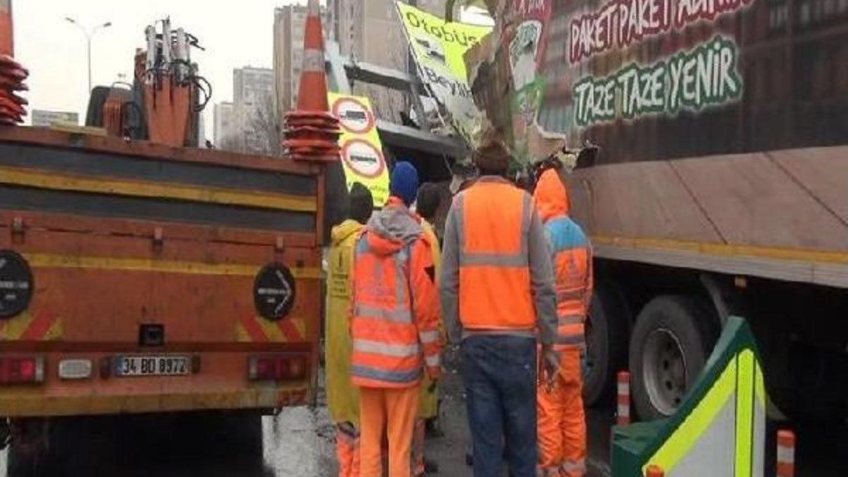 Kaza saat 13.30 sıralarında D-100 karayolu yan yol Edirne istikameti Beylikdüzü mevkiinde meydana geldi. Bayram Güven'in kullandığı 20 AES 85 plakalı gıda ürünü taşıyan kamyon "Otobüs ve kamyon giremez" yazılı yükseklik uyarı levhasının altında geçmeye çalışırken levhaya çarptı. Çarpmanın etkisiyle levha kamyonun kasasının üzerine düştü ve kamyonun kasasında hasar oluştu. Kaza nedeniyle yol trafiğe kapandı. Levhayı kaldırmak için olay yerine İstanbul Büyükşehir Belediyesi ekipleri ile birlikte vinç getirildi. Oksijen kaynağı ile kesilen levha kamyonun üzerinde kaldırıldı. Trafik yaklaşık 2.5 saat sonra açıldı.