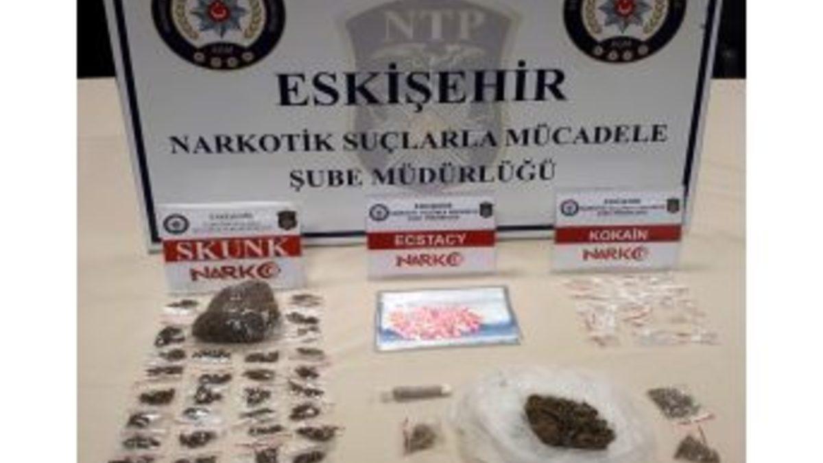 Eskişehir’de uyuşturucu satıcılarına yönelik yapılan operasyonda 9 kişi yakalandı.Narkotik Suçlarla Mücadele Şube Müdürlü ekipleri, sokak satıcılarına yönelik çalışmalarına devam ediyor. Son yapılan operasyonda 9 şüpheli yakalanırken, şahısların üzerlerinde ve ikametlerinde arama yapıldı. Aramalarda satışa hazır halde; 20 gram kokain, 1,26 gram metafetamin, 31 gram esrar, 90 gram skunk, 0,30 gram bonzai ve 135 adet ecstasy hap ele geçirildi. Şüpheli şahıslar hakkında gerekli adli işlemlere başlanılırken, 3 kişi "Uyuşturucu Madde Ticareti Yapmak" suçundan yarın adliyeye sevk edilecek.