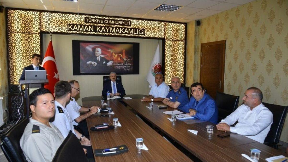 Kırşehir Valisi İbrahim Akın, Kaman ilçesinde köy ve mahalle muhtarlarıyla bir araya gelerek sorun ve taleplerini dinledi.Kaman Kaymakamlığı toplantı salonu’nda muhtarlarla buluşan Vali Akın, hem idareci hem de vatandaşları dinlemeye gayret ettiğini söyledi.Mahalle ve köy muhtarlarının sorunlarını yerinde dinlemek için bir araya geldiklerini belirten Vali İbrahim Akın, "Sizler tüm sorunlarınızı gerek bizlere gerekse ilçe kaymakamlarımıza bildirin. Elimizden geldiğince bizler de bu sorunları hep birlikte çözelim. Amacımız daha güzel, daha sorunsuz bir şekilde vatandaşlarımıza hizmet etmek" dedi.Toplantıya Kırşehir Valisi İbrahim Akın, İl Emniyet Müdürü Ismail Hakkı Akyüz, Alay Komutanı Orhan Ekemen, Il Tarım Müdürü Kenan Şahin, Kaman Kaymakamı Murat Girgin ile beraberindeki ilçe protokolü ve muhtarlar katıldı.