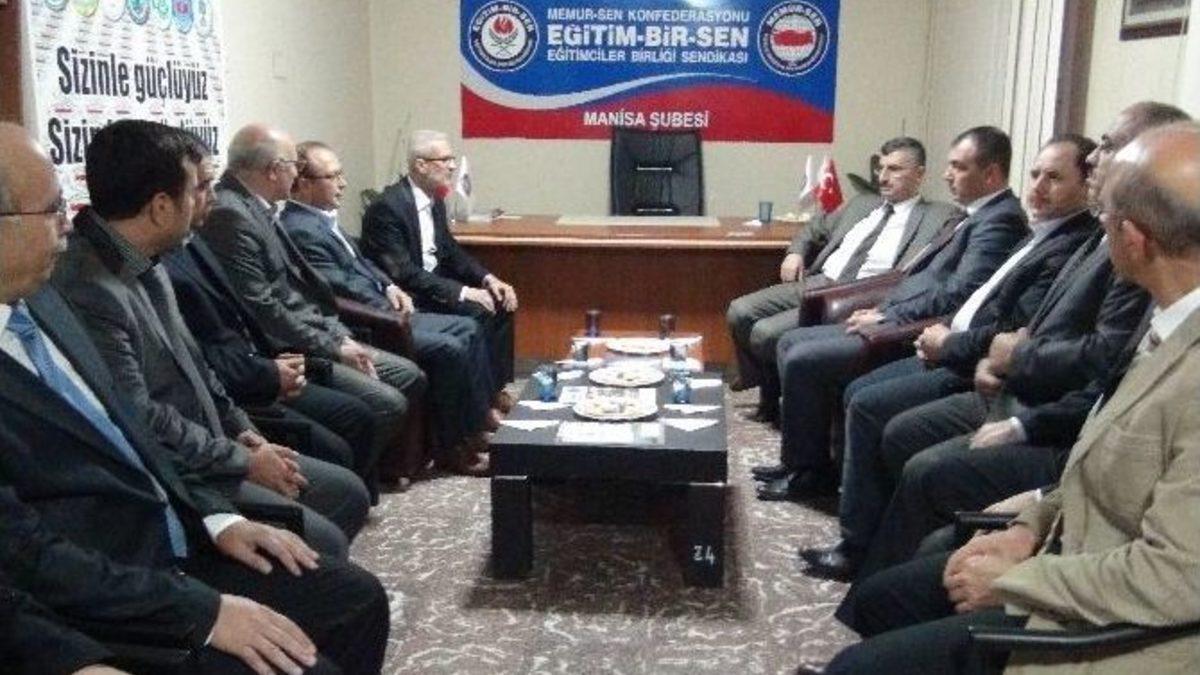 Manisa Valisi Erdoğan Bektaş, Eğitim Bir Sen Manisa Şube Başkanı Mehmet Emin Sofuoğlu’nu ziyaret etti.İki hafta önce yapılan Eğitim Bir Sen Manisa 4. Olağan Genel Kurul’unda yeniden başkanlığa seçilen Mehmet Emin Sofuoğlu’na ‘Hayırlı olsun’ ziyaretinde bulunan Vali Bektaş, Sofuoğlu’ndan sendika hakkında bilgiler aldı. Yeni Yönetim Kuruluna çalışmalarında başarılar dileyen Vali Bektaş’a ziyaretinden dolayı teşekkür eden Sofuoğlu ise hem sendikal çalışmalardan bahsetti hem de yeni yönetim kurulu üyelerini tanıttı.
