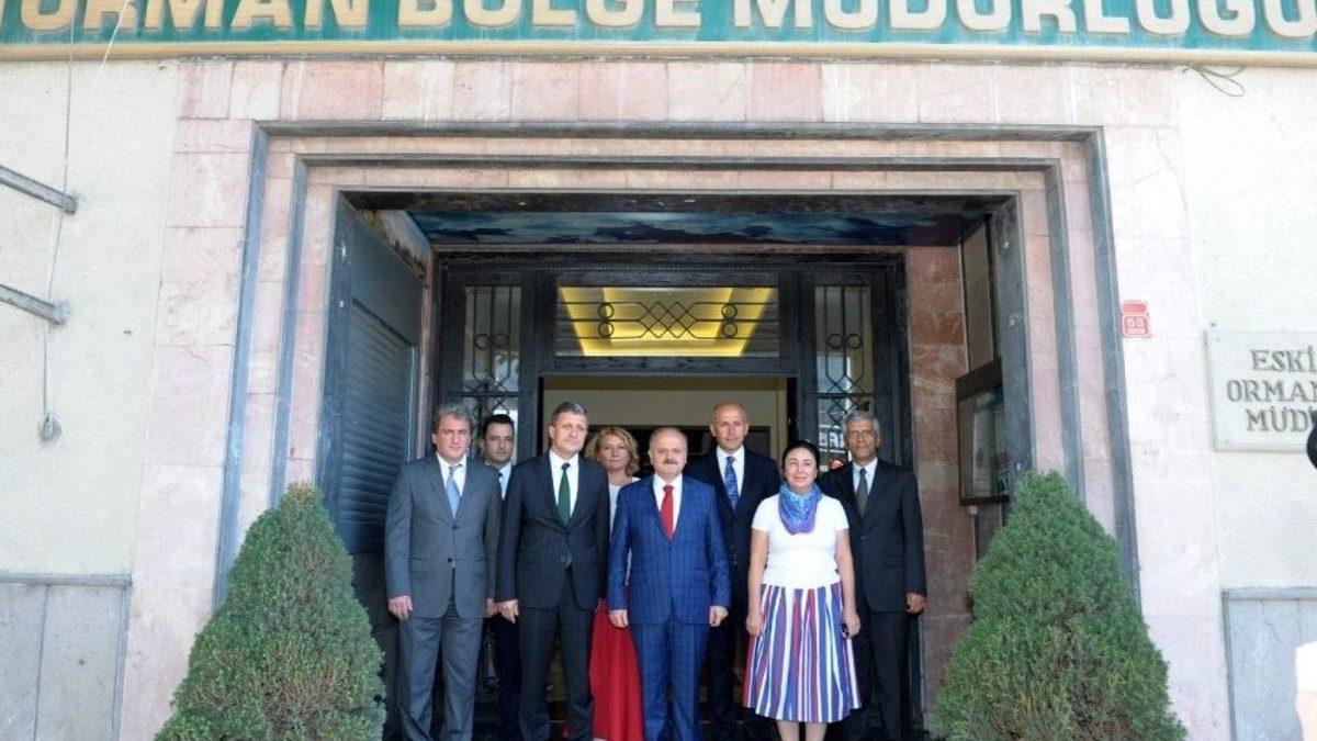 Eskişehir Orman Bölge Müdürlüğünü ziyaret eden Vali Özdemir Çakacak, Bölge Müdürü Recep Temel’den yapılan çalışmalar hakkında bilgi aldı.Eskişehir’deki görevine başladığı günden itibaren yoğun bir şekilde çalışan Vali Çakacak, fırsat buldukça kentteki kamu kurumlarını yakından tanımak için çeşitli ziyaretler gerçekleştiriyor. Göreve ilk başladığı tarihlerde kendisine hayırlı olsun ziyaretine gelen Orman Bölge Müdürü Recep Temel’e ziyarette bulunan Vali Çakacak, kurumu yaptığı çalışmalar hakkında bilgiler aldı. Vali Çakacak’a ormancılık, ağaçlandırma, yaz döneminde sıkça görülen orman yangınlarına karşı tedbirler ve bununla ilgili müdahaleler hakkında bilgiler verildi. Eskişehir Orman Bölge Müdürlüğünün 1951 yılında "Eskişehir Orman Başmüdürlüğü" olarak kurulduğunu aktaran Bölge Müdürü Temel, Eskişehir ve Afyonkarahisar illerinin görev sorumluluk alanlarında olduğunu kaydetti. Meralarda erozyon kontrolü, sel, çığ ve heyelan önleme amaçlı projeler yaparak uygulamaya koyduklarını söyleyen ve ağaçlandırma çalışmalarına büyük önem verdiklerini dile getiren Müdür Temel, “Eskişehir’de gerçekleştirilen ağaçlandırma, rehabilitasyon ve erozyon kontrolü çalışmaları kapsamında; 2003-2017 yılları arasında 1 milyon 76 bin 450 dekar arazide ağaçlandırma çalışması yapılmış ve 67 milyon 800 bin adet fidan toprakla buluşturulmuştur” dedi.Ülkemizdeki orman ve su kaynaklarının sürdürülebilir nitelikte olmasının önemine dikkat çeken Vali Çakacak ziyaret esnasında, son zamanlarda sıkça görülen orman yangınları için herkesi duyarlı olmaya çağırdı. Orman yangınlarında toplumun bilinçli davranması gerektiğine parmak basan Vali Çakacak, önceden alınacak tedbirler hakkında herkesin üzerine belirli görevler düştüğünü söyledi. Yeşil alanların çoğaltılması açısından ağaçlandırma çalışmalarının önemli olduğunu vurgulayan Vali Çakacak, Bölge Müdürü Temel’e verdiği bilgiler ve yapılan çalışmalardan dolayı teşekkür etti.