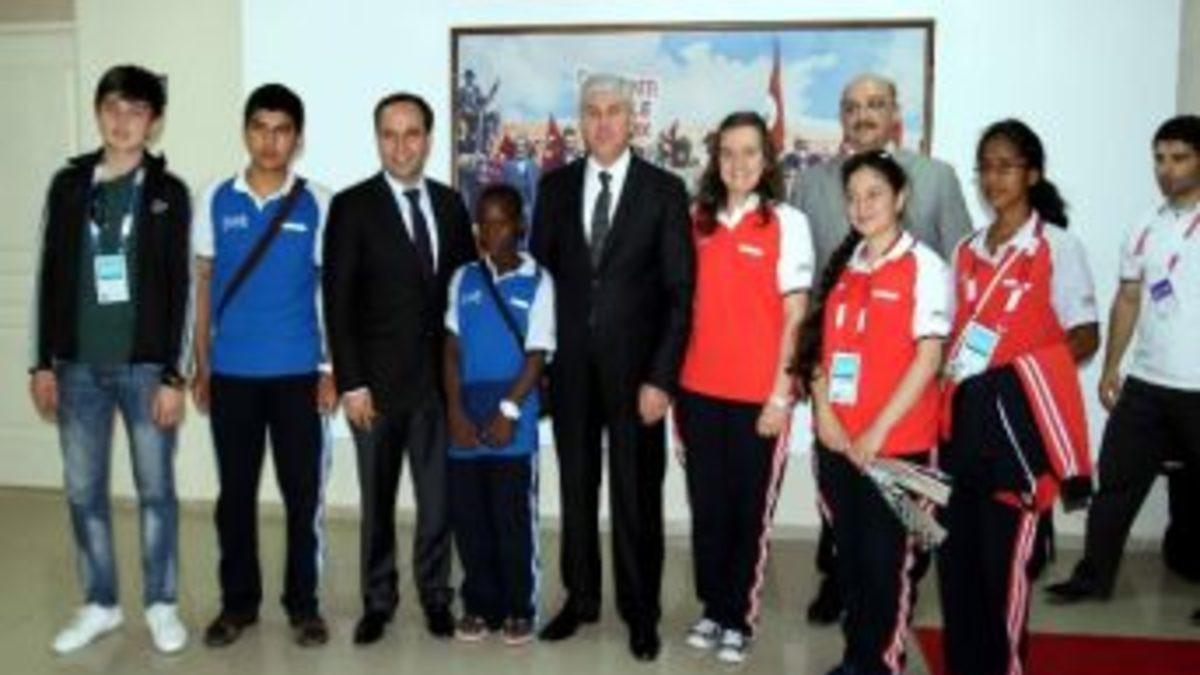 Uluslararası Türkçe Derneği'nin düzenlediği 11. Uluslararası Türkçe Olimpiyatları için Uşak’a gelen öğrenciler Vali Mehmet Ufuk Erden’i ziyaret etti.
