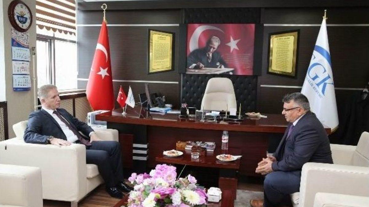 Sivas Valisi Davut Gül Sosyal Güvenlik Kurumu İl Müdürlüğü’nü, Ulaştırma Bölge Müdürlüğü’nü, Aşık Veysel Kültür Sanat Evi ile KOSGEB İl Müdürlüğü’nü ziyaret etti.İlk olarak Sosyal Güvenlik Kurumu İl Müdürlüğü’nü ziyaret eden Gül, burada Müdür Vekili Kadir Boztepe ile birlikte bir süre müdürlüğü gezerek hem çalışanlar hem de işlem yaptıran vatandaşlar ile görüştü. Gül, kurumun Kümbet yolu üzerinde yer alan ana binası ile İstasyon Cadde’sinde bulunan ek binası hakkında Boztepe’den bilgi aldı.Gül, ardından Ulaştırma Bölge Müdürlüğü’ne geçerek Bölge Müdürü Ömer Açıkalın’dan müdürlüğün hizmetleri hakkında brifing aldı. Aşık Veysel Kültür Sanat Evi’nde devam eden çalışmaları da yerinde inceleyen Gül, İl Kültür ve Turizm Müdürü Kadir Pürlü ve diğer yetkililerden bilgi alarak sanat evini gezdi. İncelemelerde Vali Yardımcısı Yeliz Yıldızhan da yer aldı.Gül, son olarak KOSGEB İl Müdürü Bahattin Ünal’ı da ziyaret ederek KOSGEB’in son dönemlerde yapmış olduğu çalışmalar ve hizmetleri hakkında fikir alışverişinde bulundu.