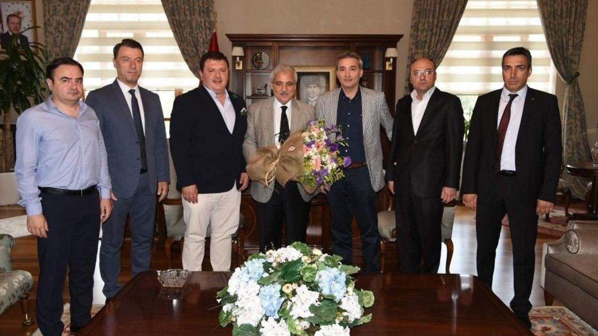 Manisa Büyükşehir Belediye Spor Kulüp Başkanı Mevlüt Aktan, yeni yönetim kurulu üyeleriyle birlikte Vali Mustafa Hakan Güvençer’i ziyaret etti.Vali Güvençer’i ziyarete Kulüp Başkan Aktan’ın yanı sıra Asbaşkan Orkun Şıktaşlı, Futbol Şube Sorumlusu Hakan Kadayıfçılar, İdari İşler Sorumlusu Bora Çaylan, Alt Yapı Sorumlusu Özcan Nalbantlar ile birlikte Basın Sözcüsü Gökmen Aytaç katıldı. Manisa Büyükşehir Belediye Spor Kulübü Başkanı Mevlüt Aktan, ziyaret öncesinde Vali Güvençer’e, üzerinde isminin yazılı olduğu futbol takımının formasını hediye etti. 6 Haziran’da gerçekleştirilen Olağan Kongre’de göreve geldiklerini dile getiren Aktan, kulübün faaliyetleri ve hedefleri hakkında Manisa Valisi Mustafa Hakan Güvençer’e bilgi verdi. Aktan, yönetim kurulu üyelerini tanıttığı Vali Güvençer’i, kulübün maçlarına da davet etti.Manisa Valisi Mustafa Hakan Güvençer’de, Manisa Büyükşehir Belediye Spor Kulübü Başkanı Mevlüt Aktan ve yönetim kurulunda yer alan isimlere başarı dileklerinde bulundu. Vali Güvençer, fırsat bulduğu takdirde Manisa Büyükşehir Belediyespor’un futbol ve voleybol maçlarına gelmek istediğini söyledi.