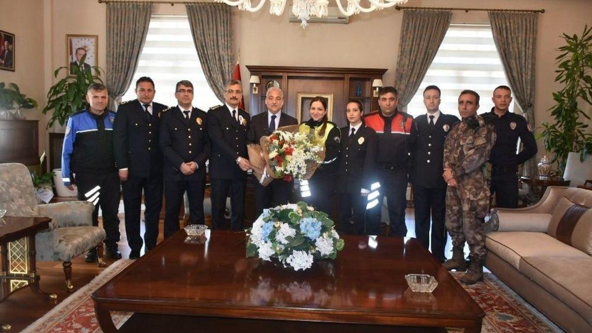 Türk Polis Teşkilatı’nın 172. yıldönümünde Manisa İl Emniyet Müdürlüğü’nü makamında ağırlayan Manisa Valisi Mustafa Hakan Güvençer, 172 yıllık bir teşkilat yapılanmasının kadim millet anlayışının göstergesi olduğunu söyledi.Manisa İl Emniyet Müdürü Fevzi Bilgiç, Polis Teşkilatının 172.kuruluş yıldönümü nedeniyle personeli ile birlikte Manisa Valisi Mustafa Hakan Güvençer’i makamında ziyaret etti. Ziyarette konuşan Manisa İl Emniyet Müdürü Fevzi Bilgiç, polis teşkilatının kurulduğu günden beri kendini yenilediğini belirterek, "Kurulduğu günden beri gelişen teknolojiye göre personelini yenileyen gerekli teçhizat ve çeşitli suç örgütlerinin oluşumunda gelişen şartlara göre kendisini geliştiren bir teşkilat yapımızla beraber hizmet etmeye devam ediyoruz. Teşkilatımızın yapılanması itibarıyla, bir adli ve idari yapılanması var. Bu idari ve adli yapılanma içerisinde vatanın bölünmez bütünlüğü, milletimizin huzur ve sükuneti için mücadelemizi canla başla yapmaya devam ediyoruz. En son 15 Temmuz darbe kalkışması döneminde yine fedakar bir şekilde arkadaşlarımızın çalışmasıyla hep birlikte sizlerin önderliğinde ve yönlendirmesiyle teşkilatımıza düşen görevi en iyi şekilde yapma gayreti içerisinde olduğumuzu düşünüyorum. Bu vesileyle mükafatımız olarak sizlerin talimatlarını almaya devam edeceğiz" dedi.Kendisini ziyarete gelen emniyet mensuplarını misafir olarak değil mesai arkadaşı olarak gördüğünü belirten Vali Güvençer "Hem il Valisi olarak kabul öncesi çalışma arkadaşlarımla hem de aynı zamanda Türkiye Cumhuriyeti Devletinin bir vatandaşı olarak Türk Polis Teşkilatıyla, değerli arkadaşlarımla gurur duyduğumu büyük bir samimiyetle ifade ediyorum. Birinci derecede bu ildeki kamu düzeninin, güvenliğinin, vatandaşımızın can, mal emniyetinin temel karargahı. Şu anda burada gördüğünüz 2 bin 500 polis çalışanımızı temsil eden arkadaşlarımız bu odanın asli çalışanları, iş ortakları, dert ortakları pozisyonundalar. Belki de dünyada çok az teşkilata nasip olmuş bir benimsenme, sahiplenme, sevilme söz konusu. Elbette kolluk gücü dünyanın tüm ülkelerinde belli bir güven tesis etmiştir. Ama bu güven tesisinin ötesinde, kendisinden sayma, muhabbetle sahip çıkma ve sonuna kadar doğrudan kamu düzeni ve güvenliğiyle ilgili olmasa bile, başı her dara düştüğünde müracaat edilecek ilk devlet kurumu olarak polisin algılanmış olması bize mahsus. Polis teşkilatımızın yarattığı imaja mahsus bir özellik" dedi.172 yıllık bir teşkilatlanma yapısının kadim devlet anlayışı olan kadim bir milletin göstergesi olduğuna vurgu yapan Vali Güvençer, "Ayrıca 172 yıla da vurgu yapmak lazım. Kadim devlet, kadim millet böyle olur. Cumhuriyetimiz çok daha genç, Allaha çok şükür biz kadim devlet ilkesine sahip bir millet olarak Cumhuriyetimizin yaşından çok daha büyük kurumlara sahibiz. Bir kanuna, bir teşkilat şemasına dayalı kent kolluk gücü olarak polis teşkilatı bundan 172 yıl önce kurulmuş ama haddizatında toplum düzenini koruyan ve kolluk vazifesini yapan teşkilatlanmamız 172 yıldan çok daha eski” diye konuştu.