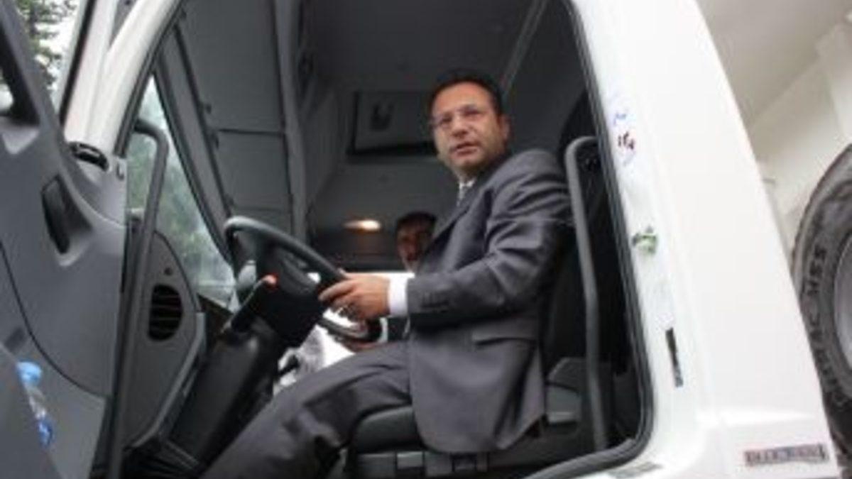 Samsun İl Özel İdaresi tarafındani ilçelere alınan kamyonların tanıtım töreninde Samsun Valisi Hüseyin Aksoy, kamyona bindi.