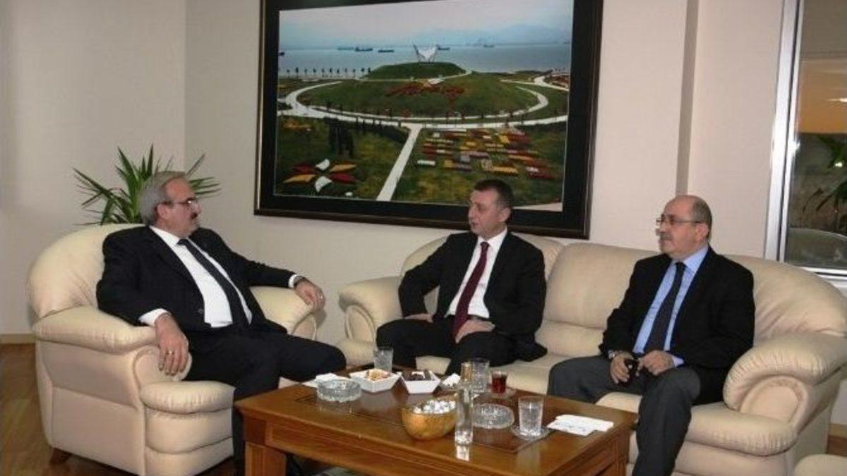 Bursa Valisi Münir Karaloğlu, Kocaeli Büyükşehir Belediyesi Genel Sekreteri Doç. Dr. Tahir Büyükakın’ı makamında ziyaret etti.Kocaeli Büyükşehir Belediyesi eski Genel Sekreterlerinden Bursa Valisi Münir Karaloğlu Kocaeli Büyükşehir Belediyesi Genel Sekreteri Doç. Dr. Tahir Büyükakın’ı makamında ziyaret etti. Başkan Danışmanı Ömer Polat’ın da bulunduğu ziyarette Genel Sekreter Büyükakın Vali Karaloğlu’na tramvay projesi hakkında bilgi aktardı.Tramvay projesiyle ilgili Genel Sekreter Büyükakın’dan bilgi alan Vali Karaloğlu, tramvay projesinin Kocaeli için önemli bir ihtiyaç olduğunu belirtti. Vali Karaloğlu, Genel Sekreter Büyükakın’ı başarılı çalışmalarından dolayı tebrik etti. Genel Sekreter Büyükakın, Vali Karaloğlu ve Başkan Danışmanı Polat, Kocaeli’de yapılması planlanan ulaşım çalışmalarıyla ilgili bir süre sohbet etti. Büyükakın, Vali Karaloğluna gerçekleştirdiği ziyaret dolayısıyla teşekkür ederek Kocaeli için yeni projeler ve çalışmaların devam edeceğini belirtti.2004 ile 2009 yılları arasında Kocaeli Büyükşehir Belediyesi Genel Sekreteri olan Bursa Valisi Münir Karaloğlu, Kocaeli’de ki görevinden sonra Van Valiliğine ardından da Bursa Valiliğine atandı. Vali Karaloğlu 2013 yılından bu yana Bursa’da görevini yapıyor.
