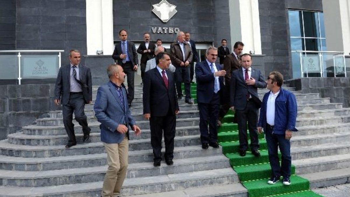 Gıda, Tarım ve Hayvancılık İl Müdürlüğü’nün Van Ticaret Borsası (VATBO) toplantı salonunda düzenlediği TARSİM tanıtım toplantısına katılan Van Valisi Münir Karaloğlu, beraberinde Yardımcısı Zafer Coşkun, Van Ticaret ve Sanayi Odası (VATSO) Başkanı Mirza Nadiroğlu ile birlikte VATBO Başkanı Feridun Irak’a ‘hayırlı olsun’ ziyaretinde bulundu. VATBO Başkan Vekili Hasan Yergin, Yönetim Kurulu Üyeleri Faysal Değer, İbrahim Koyuncu ve Genel Sekreter Ali Kasapoğlu tarafından karşılanan Vali Karaloğlu, Başkan Irak’ın makamında bir süre oturduktan sonra, yeni hizmet binasını gezerek yetkililerden bilgi aldı. Binayı beğendiğini ifade eden Karaloğlu; binanın resmi açılışını da, Gümrük ve Ticaret Bakanı Hayati Yazıcı’nın mayıs ayında Van’a yapacağı ziyaret esnasında yapmayı teklif etti.