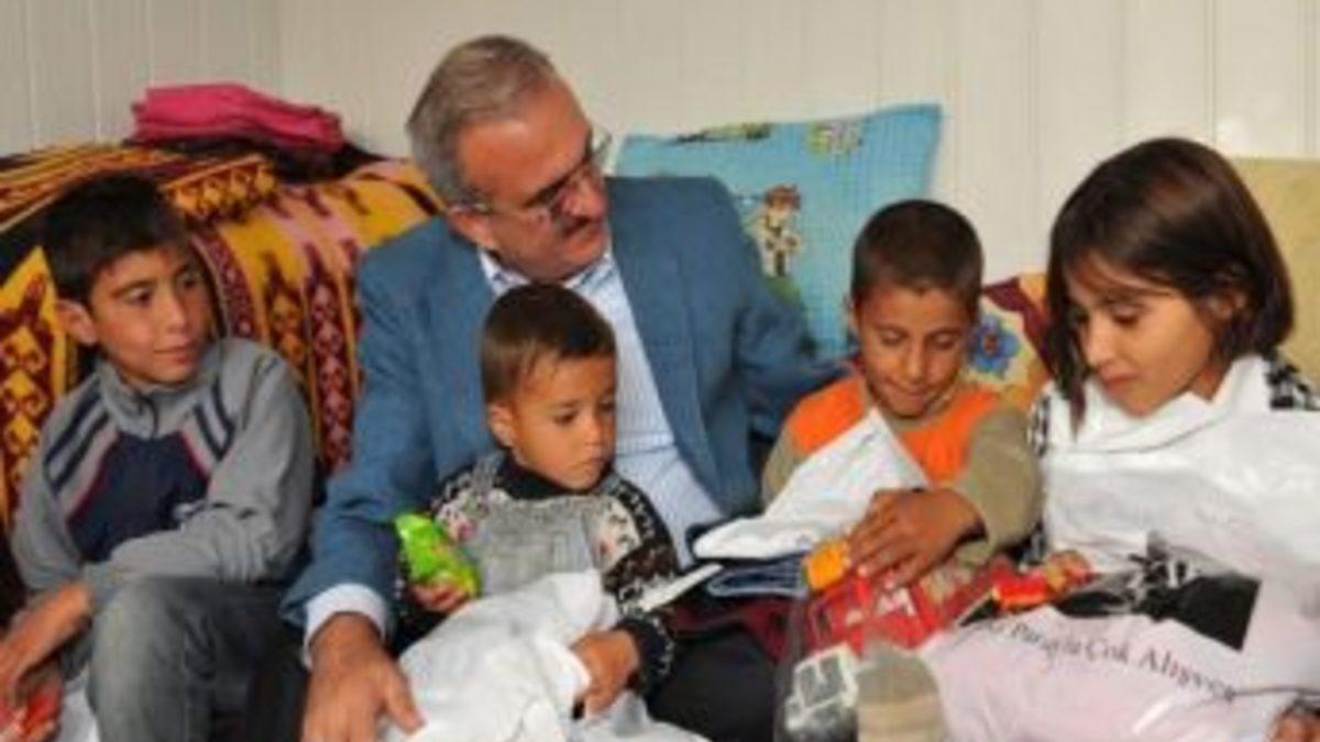 Van Valisi Münir Karaloğlu, 23 Ekim’de meydana gelen depremde eşlerini kaybeden ‘İleri ve Ölgü’ ailelerini ziyaret ederek, çocuklara bayramlıklarını verdi.