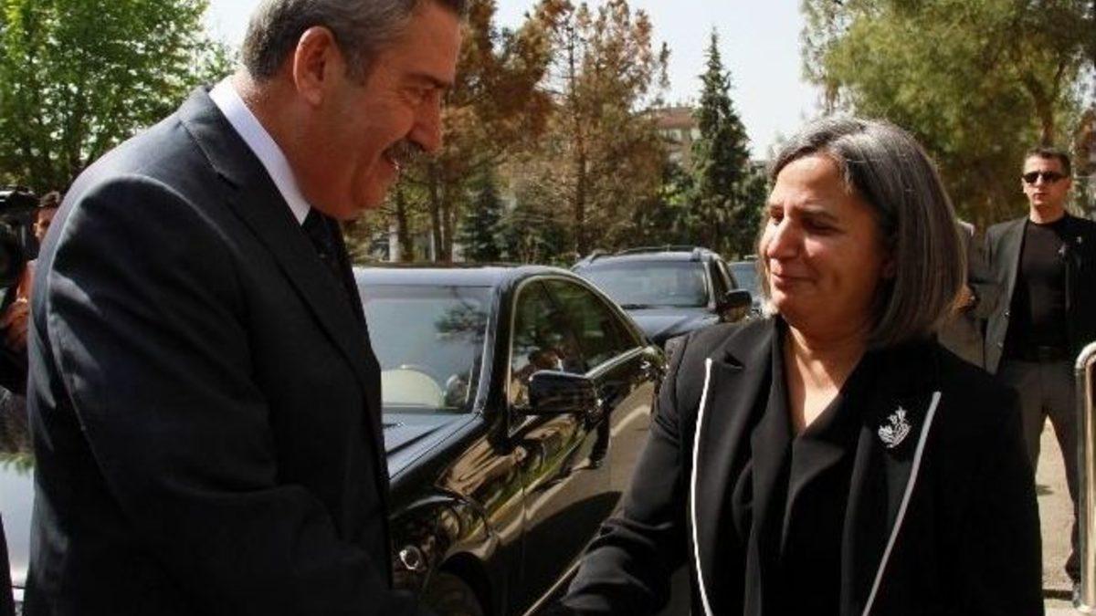 Diyarbakır Valisi Mustafa Cahit Kıraç ile Emniyet Müdürü Halis Böğürcü, Büyükşehir Belediyesi Eşbaşkanları Gültan Kışanak ve Fırat Anlı'yı ziyaret ederek, görevlerinde başarılar diledi.Seçimlerin ardından belediye hizmetlerini kaldığı yerden devam ettiren Büyükşehir Belediyesi Eşbaşkanları Gültan Kışanak ve Fırat Anlı, Vali Mustafa Cahit Kıraç ve Emniyet Müdürü Dr. Halis Böğürcü'nün tebriklerini kabul etti. Ziyarette Büyükşehir Belediyesi Genel Sekreter Yardımcıları Abdullah Sevinç, Şahin Elhakan ve Zülfü Atlı da hazır bulundu. Ziyarette Diyarbakır Valisi Mustafa Cahit Kıraç hem eşbaşkanları hem de başkanların şahsında meclis ve encümen üyelerini kutlayarak, hayırlı olsun dileğinde bulundu. Diyarbakır'ın bölgenin dinamik yapısı, 2 milyona ulaşan nüfusuyla, arkasında 12 bin yıllık bir tarih, 5 bin yıllık surları olan huzur dolu bir şehir olduğunu söyleyen Vali Kıraç, "Bu kentin başta kültür varlıkları olmak üzere doğal yapısını koruyarak, geliştirerek, bundan sonraki nesillere onlardan aldığımız emaneti bırakmak için büyükşehir belediyemizle müşterek hareket etmek zorundayız" dedi.Mahalli idarelerin, hem merkezdeki büyükşehir belediyesi hem ilçelerdeki belediyelerin kamu kuruluşlarının görevlileriyle ortak hareket ederek Diyarbakır'a hizmet etmenin arayışı içerisinde olacaklarını belirten Vali Kıraç, "İnşallah hizmet kaldığı yerden sizler sayesinde daha iyi bir noktaya gelecek" diye konuştu.Kıraç ayrıca basının da kentin sorunlarını çözümcül açıdan bakarak dile getirmesinin çalışmalarını kolaylaştırdığını belirterek, basın mensuplarına teşekkür etti.Kışanak ise konuşmasına Vali Kıraç'a hoşgeldiniz diyerek başladı. Önemli bir kentte önemli ve zor görevlerin sorumluluğunu üstlenen kişiler olarak hem görevlerini yapacaklarını hem de birlikte daha iyi şeyler yapabilmenin imkanlarını değerlendireceklerini söyleyen Kışanak, "Siyasetin, yönetimin nezaketi çerçevesinde kentimizin çıkarları doğrultusunda birlikte çalışma yürüteceğimize inanıyorum. Sizlerin de katkınızı, desteğinizi esirgemeyeceğinize inanıyorum" dedi.Diyarbakır'ın son derece önemli ve güçlü potansiyeli olan bir kent olduğunu belirten Kışanak, "Eğer bizler gerekli katkıyı yaparsak, gerekli hizmeti ortaya koyabilirsek Diyarbakır şaha kalkabilecek bir kent. Bizler de bunun çabası, gayreti içerisinde olacağız. Bu ziyaretinizi de bu çalışmaların bir adımı olarak görüyoruz" diye konuştu.Eşbaşkan Fırat Anlı da böyle güzel bir bahar gününde, geleceğe dair umutların son derece güçlü olduğu bir dönem başladığını söyledi. Anlı, "Diyarbakır için çok güzel hizmetler ve çalışmaların yapılacağı dönemi birlikte paylaşacağımıza inanıyorum" diye konuştu. Görevlerin gelip geçici olduğuna dikkat çeken Anlı, "Bizler şimdi bu görevi yürütüyoruz, yarın bir başkası yapacak. Görev süremiz içerisinde hem kendi vicdanımıza hem de hizmet ürettiğimiz insanlara karşı inşallah başımız dik olur. Başarılı oluruz" şeklinde konuştu.Görüşmenin ardından eşbaşkanlar Anlı ve Kışanak Vali Kıraç'a üzerinde Diyarbakır’ın Surları, On Gözlü Köprü, Dicle Nehri ve diğer tarihi mekanların kolaj olarak işlendiği bir çini hediye etti.