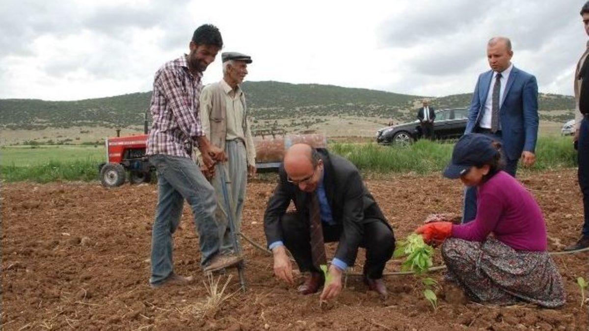 Adıyaman Valisi Mahmut Demirtaş, ziyaret ettiği köyde tütün dikimi yapan köylüler ile birlikte tütün dikti.Göreve başladığı günden beri vatandaşlarla iç içe görev yapan Adıyaman Valisi Mahmut Demirtaş, tarlada tütün dikimi yapan köylüleri ziyaret ederek tütün dikimi yaptı.Merkez Köylere Hizmet Götürme Birliği tarafından kırsal kesime yönelik yapılan yatırımları yerinde görmek ve köylü vatandaşlarla bir araya gelmek üzere köy gezilerine çıkan Vali Mahmut Demirtaş, köyler arasındaki mesafelerde yol güzergahında tütün dikimi yapan köylülerin yanına gitti. Makam aracından inen Vali Mahmut Demirtaş, köylülerle sohbet ettikten sonra köylülerle tütün dikimi yaptı.Vali Demirtaş’ı tütün tarlasında gören köylüler kısa bir şaşkınlık yaşayarak, ani ziyaretten duydukları memnuniyeti ifade ederek, sıcak ve içten yaklaşımından dolayı teşekkür ettiler.Vali Mahmut Demirtaş, bir taraftan tütün dikimi yaparken bir taraftan da tarlada çalışan köylülerin sorunlarını dinledi.Vali Mahmut Demirtaş, "Alın teri bizim için çok değerlidir. Çiftçilik cefakar bir meslektir. Elde ettiği ürüne alın terini katan çiftçilerimizin emeği çok kutsaldır. Bende geçmişte tarlada çalışan bir köylü çocuğu olarak köylünün ve çiftçinin alın terinin ne olduğunu çok iyi biliyorum. Biz Adıyaman’a, vatandaşlarımıza efendi olmaya değil, hizmetkar olmaya geldik. Bizler halkımızın istek ve ihtiyaçlarını karşılamakla yükümlüyüz. Ziyaret gerçekleştirdiğimiz köylerde köylü vatandaşlarımızın yüzündeki tebessüm bizleri de mutlu ediyor. Devlet olarak köylümüzün ve çiftçimizin refahının artırılmasını sağlayacak sulama projelerinin bir an önce hayata geçirilmesi için çok çalışıyoruz. Bugün tütün dikimi yapan cefakar köylülerimize kolaylık ve bereketli bir mahsul yılı diliyorum” diye konuştu.