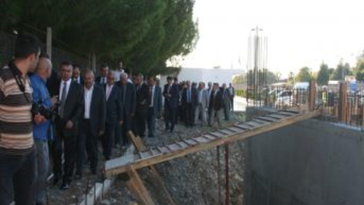 Hatay Valisi M.Celalettin Lekesiz, Dörtyol Ticaret ve Sanayi Odası'nın karşısında yapımına başlanan hükümet konağı inşaatında...