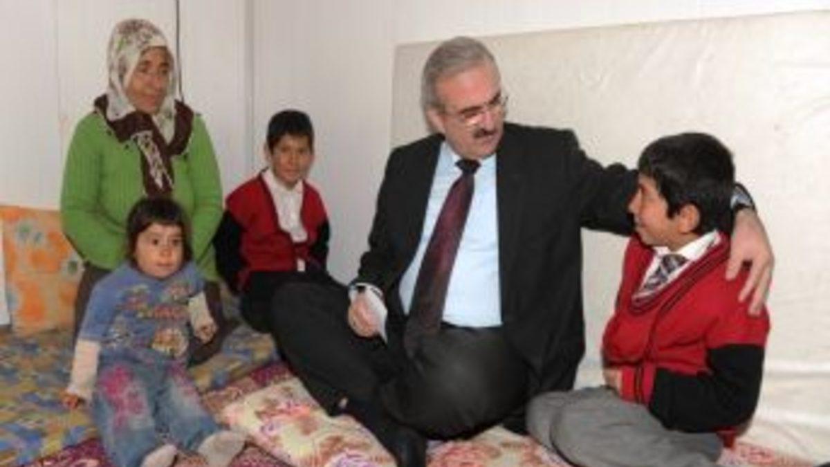 Van Valisi Münir Karaloğlu, babalarını 2 yıl önce kaybeden, öz anneleri tarafından da depremden 1 ay sonra terk edilen 5 kişilik Çermik kardeşler ve Tabar ailesini ziyaret etti.