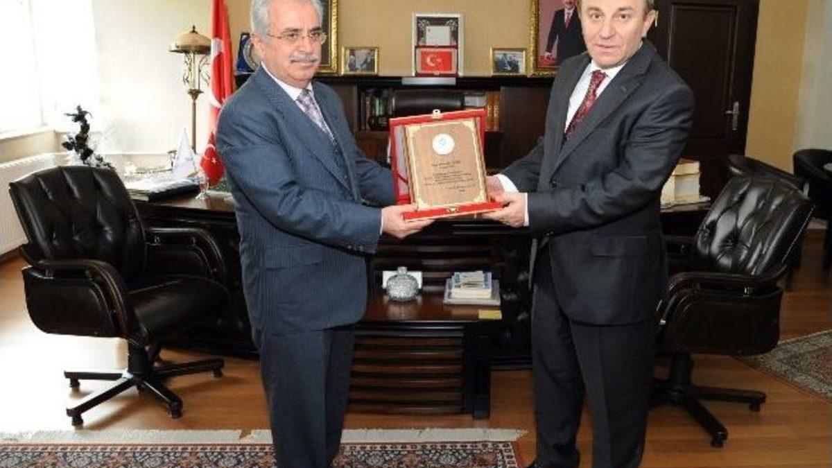 Rektör Yaylalı ziyaret sonunda Vali Sebahattin Öztürk’e plaket takdim etti.