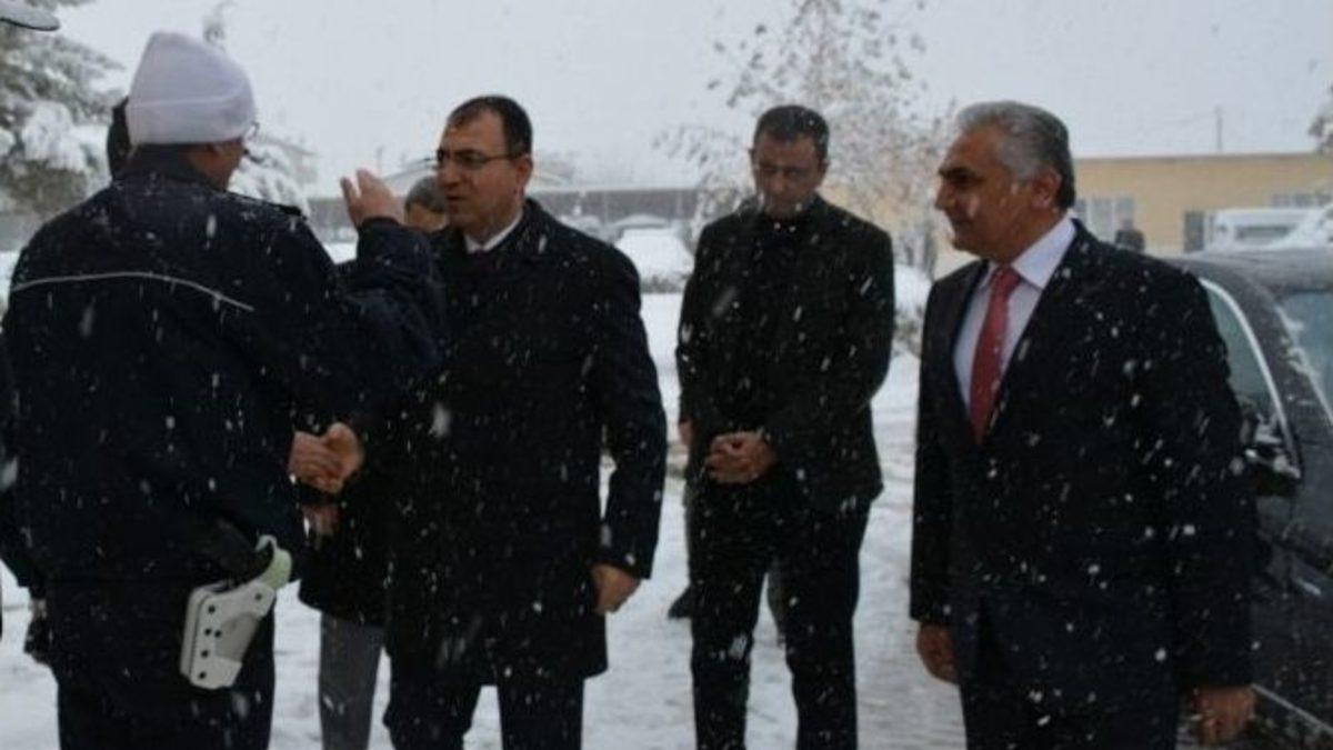 Malatya Valisi Mustafa Toprak şehir içi ve şehirlerarası yollardaki trafiğin durumu hakkında bilgiler aldı.Vali Mustafa Toprak, İl Emniyet Müdürü Dr. Ömer Urhal’ ın da hazır bulunduğu ziyarette Bölge Trafik Denetleme Şube Müdürlüğünde incelemelerde bulundu ve Şube Müdüründen bu günkü yoğun kar yağışı nedeni ile şehir içi ve şehirlerarası yollar ile yaya ve araçların güvenliği açısından ne gibi tedbirlerin alındığı konusunda bilgiler aldı.Vali Toprak, sorumlu müdüre “Bölge Trafik Denetleme Şube Müdürlüğü olarak kardan yayaların, araçların, şehir içi ana yollar ve devlet yollarının etkilenmemesi adına ne yapıyorsunuz. Bu tedbirler önceden karara bağlanmıştır ama fiilen bu güne kadar, bu saate kadar neler yapıldı ve yapılıyor” diye sordu.“Kar lastiği ve zincir takılması konusunda kontrollerimizi sıklaştırdık”Şube Müdürü de yaptığı bilgilendirmede“01 Aralık 2016 tarihinden itibaren Kış Lastiği kontrol uygulaması yapıyoruz, karın yağdığı gece saatinden itibaren de belediyelerimizle irtibata geçerek tuzlama çalışması kar temizleme çalışması yaptırıyoruz. Dünden itibaren de zorunlu olarak yola çıkması gereken araçların kar lastiği ve zincir takmaları konusunda kontrollerimizi sıklaştırdık ve sürücüleri bu konuda uyarıyoruz ve trafiğe çıkmalarına izin vermiyoruz.İller arasında seyir halinde olan yolcu otobüslerimizden Gürün ve Hekimhan bölgelerinde yolların kapalı olması nedeni ile yola çıkmalarına izin vermiyoruz ve MAŞTİ’ de yolun durumuna göre bekletiyoruz” dedi.Emniyet Müdürü Urhal’ da Şehir içerindeki Trafik Denetleme Ekiplerinin Büyükşehir Belediyesi Ekipleri ile Şehirlerarası yollarda Bölge Trafik Denetleme Ekiplerinin Karayolları Ekipleri ile koordineli olarak çalıştıklarını ifade ederek ekiplerin kapalı olan yolları açtırdıklarını belirtti.Vali Toprak, İl Emniyet Müdürü ve Şube Müdürü nezdinde ulaşımın sağlıklı bir şekilde sağlanması amacıyla çalışan ekiplere ve personeline teşekkür etti.