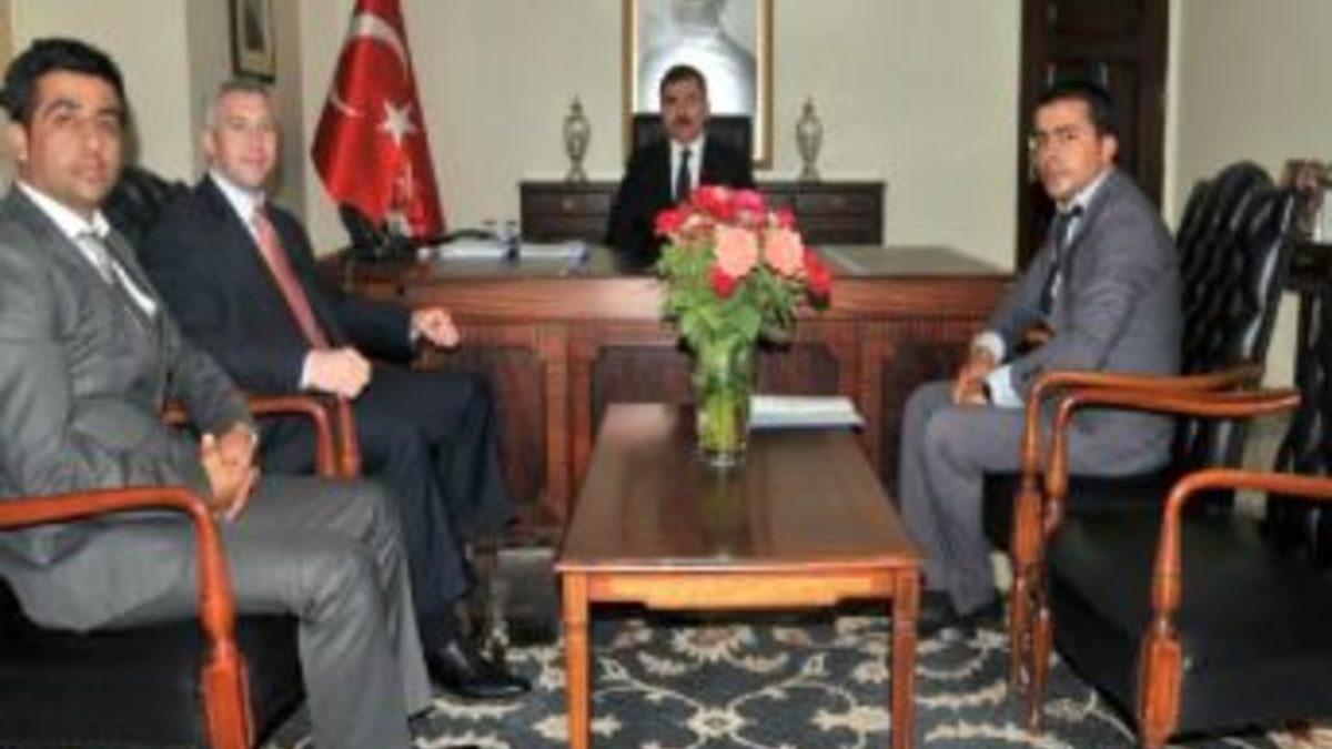 Vali Ahmet Turhan’ın makamında kabul ettiği Savcı Brian Garrıson ve ‘London Street’ İngilizce dil kursu kurucusu Mehmet Şefik Aydın, Vali Ahmet Turhan’a programın içeriği ile ilgili bilgi verdi.