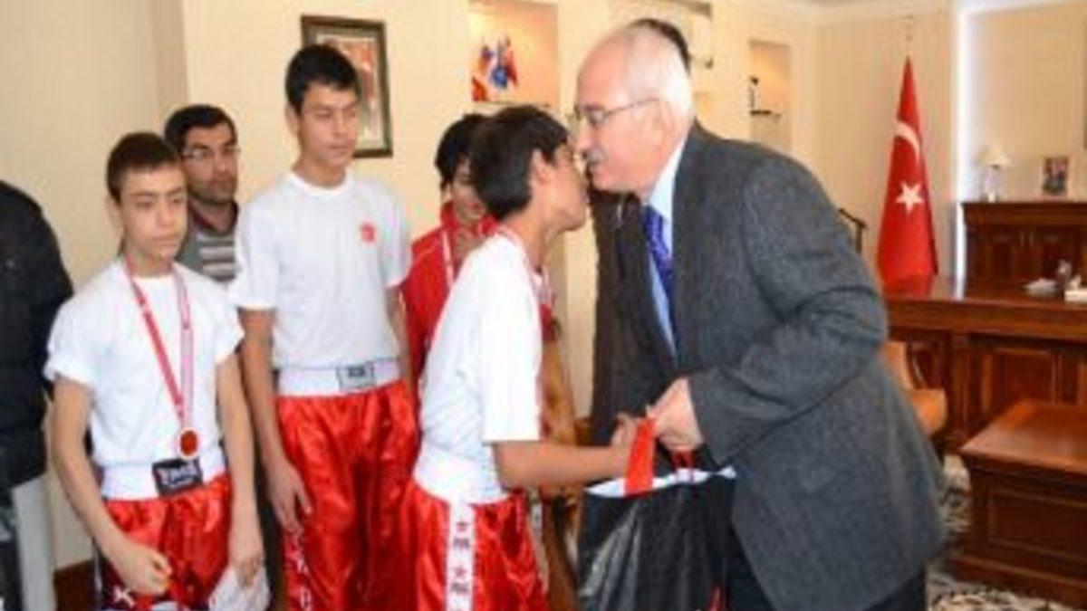 Aksaray’da yapılan ve Türkiye’den 1450 sporcunun katıldığı Türkiye Minikler ve Yıldızlar Kick Boks Şampiyonası’nda Niğde’yi baraşıyla temsil ederek 3 altın, 2 gümüş ve 1 bronz madalya kazanan sporcular, Niğde Valisi Alim Barut’u ziyaret etti.