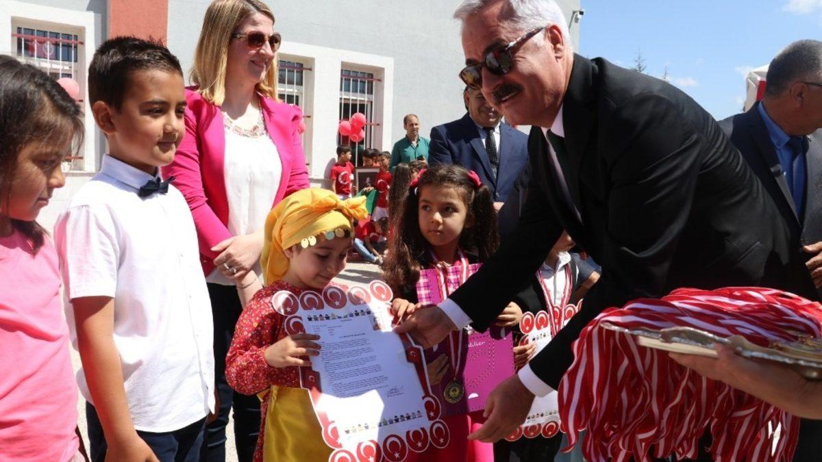 Vali Seymenoğlu’nun konuşması sonrasında karne heyecanı yaşayan öğrenciler yılboyunca yaptıklarının karşılığını karne olarak aldılar.