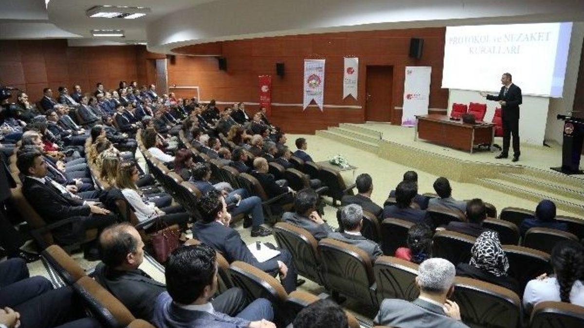 Kayseri Valiliği, başta Valilik merkez ve ilçe birimleri olmak üzere ilde yer alan kamu kurum ve kuruluşları yetkilileri ve personeline yönelik protokol ve nezaket kuralları semineri düzenledi.Protokol Uzmanı İhsan Ataöv tarafından verilen eğitim Valilik konferans salonunda gerçekleştirildi. 2 gün süren seminerde katılımcılara protokol ve nezaket kuralları, makam, tören, ziyaret ve davetlerde protokol kuralları, imaj ve giyimde protokol kuralları ve ilde protokol kuralları konularında eğitimler verildi.Sıcak ve samimi ortamda gerçekleşen eğitimde protokol ve nezaket kuralları uygulamalı olarak anlatıldı, katılımcıların dikkat etmesi gereken konulara değinildi.Protokol Uzmanı İhsan Ataöv ise Kayseri’de bulunmaktan dolayı duyduğu memnuniyeti dile getirerek, şehir olarak davetlerin ve organizasyonların üst seviyede olduğu Kayseri’de protokol ve nezaket kuralları bakımından edindiği izlenimleri katılımcılarla paylaştı.2 gün süren eğitim ile ilde yer alan kamu kurum ve kuruluşlarında protokol ve nezaket kuralları konusunda personelin bilinçlendirilmesi sağlandı.