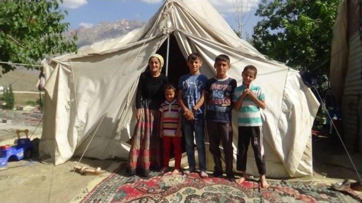 Hakkari’de çadırda yaşam mücadelesi veren 9 kişilik aileye sahip çıkan Valilik, ev sözü de verdi.Bölgede meydana gelen olaylardan dolayı Şırnak’ın Beytüşebap ilçesinden Hakkari’ye giderek Yeni Mahalle’ye yerleşen 9 kişilik Bor ailesi, kendi imkanlarıyla derme çatma toprak bir ev aldı. Evlerinin tahrip olması üzerine zor günler geçiren aile, Hakkari Valiliği Sosyal Yardımlaşma ve Dayanışma Vakfı (SYDV) Başkanlığı’na başvurdu. Ailenin mağduriyetini yerinde tespit eden SYDV yetkilileri, aileye ev konusunda yardım sözü verdi. Yaklaşık 3 aydır çadırda yaşam mücadelesi veren Bor ailesi, evleri yapılıncaya kadar hayırsever vatandaşların kendilerine yardım eli uzatmasını istedi.7 çocuk annesi Hatice Bor, "7 çocuğumla birlikte çadırda kalıyorum. Eşim işsizdir. Bir çocuğum da astım hastasıdır. Bazen geceleri rahatsızlanıyor. Dışarı çıkarıyorum. Maddi durumumuz da çok kötü. Toprak evimiz çok kötü durumdaydı. Valilik SYDV yetkilileri bizimle ilgilenerek ev yapımı için bize yardım edecekleri sözünü verdiler. Biz de yıktık, inşallah bugünlerde evimizin temeli atılacak. Ancak çok kötü durumdayız. Ramazan ayı içerisinde hayırsever vatandaşların da bize yardım edilmesini istiyoruz” dedi.