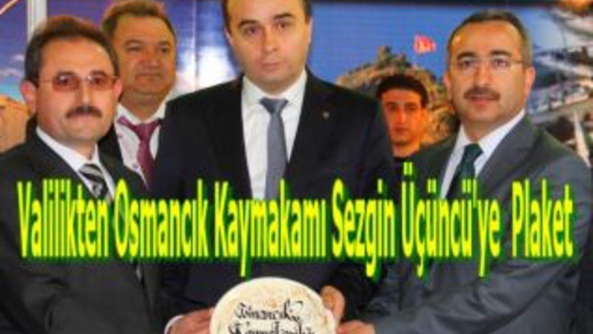 Ankara'da düzenlenen Çorum Tanıtım Günleri Fuarına katkılarından dolayı Vali Sabri Başköy ve Çorumlu Dernekler Federasyonu Başkanı Hayri Çağıl, Osmancık Kaymakamı Sezgin Üçüncü'ye kaymakamlık ve belediye adına teşekkür plaketi takdim etti.