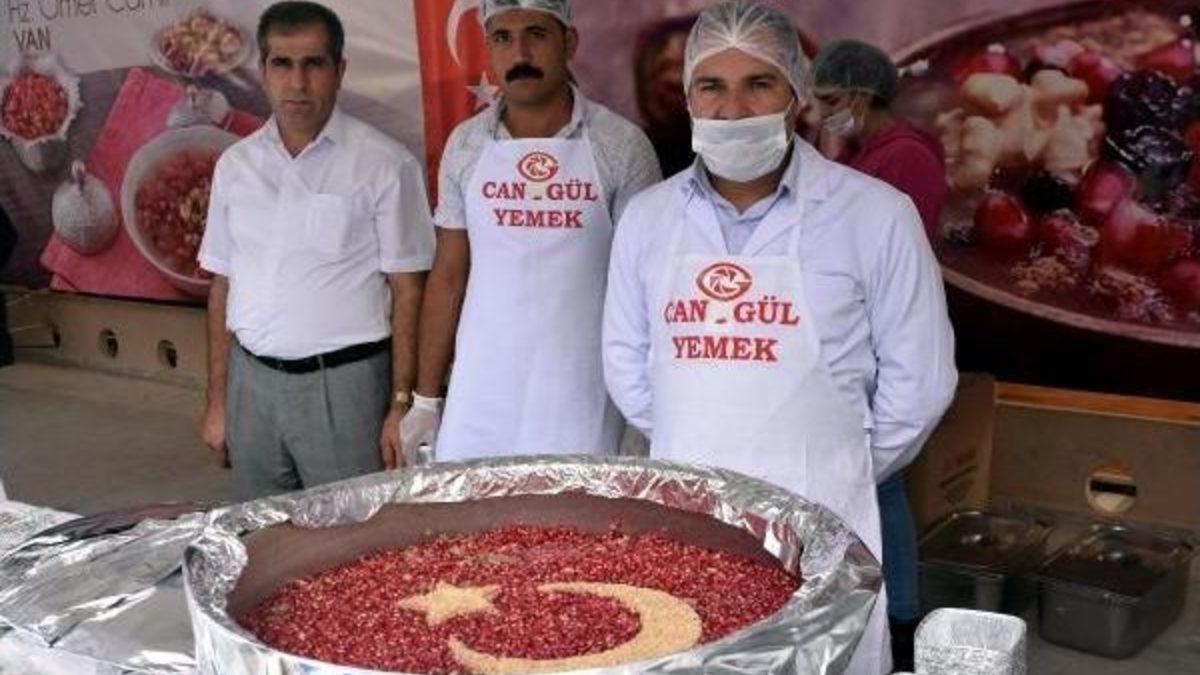 Cumhurbaşkanlığı tarafından organize edilen aşure dağıtımı, Van'ın da aralarında bulunduğu 13 kentte yapıldı. Van'da öğle namazının ardından Hz. Ömer cami avlusunda yapılan ikrama Cumhurbaşkanlığını temsilen Cumhurbaşkanlığı Koruma Daire Başkanı Ramazan Bal, Van Valisi ve Van Büyükşehir Belediye Başkan Vekili Murat Zorluoğlu, İpekyolu Kaymakamı ve Belediye Başkan Vekili Cemil Öztürk, Edremit Kaymakamı ve Belediye Başkan Vekili Atıf Çiçekli, Gürpınar Kaymakamı ve Belediye Başkan Vekili Osman Doğramacı, Tuşba Belediye Başkanı Fevzi Özgökçe, Van İl Jandarma Komutanı Tuğgeneral Yavuz Özfidan, İl Emniyet Müdürü Suat Ekici, Van Müftüsü Nimetullah Arvas, siyasi parti temsilcileri ile vatandaşlar katıldı. 3 büyük tencerede hazırlanan aşurenin üzeri nar taneleri ile kaplandıktan sonra aşçılar tarafından fındık ezmesi ile ay ve yıldız oluşturuldu.