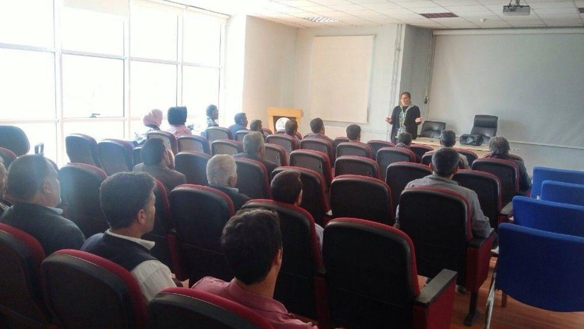 Van İl Milli Eğitim Müdürlüğü tarafından Erciş ve Bahçesaray ilçelerinde sürekli işçi statüsünde çalışan personele ‘İş Sağlığı ve Güvenliği’ eğitimi verildi.Eğitimde; personelin makine, cihaz, araç-gereç, tesis ve binalarda sağlık ve güvenlik yönünden ciddi ve yakın bir tehlike ile karşılaştığında ve koruma tedbirlerinde bir eksiklik gördüğünde yapılacakları çalışmalar anlatıldı.Çalışanların kendi görev alanlarında sağlık ve güvenlik tedbirlerine uymaları, talimat, ikaz levhalarını dikkate almaları, yetki, bilgi ve görevleri dışında hareket etmemeleri, iş alanlarına uygun kişisel koruyucu donanım kullanmaları hususunda uyarıldı.Van İl Milli Eğitim Müdürlüğü İşyeri Sağlık ve Güvenlik Birimi İl Koordinatörü Nurcan Alpaslan tarafından Erciş ve Bahçesaray ilçelerinde gerçekleştirilen eğitimlerin yangın ve acil durum eğitimleri ile destekleneceği belirtildi.