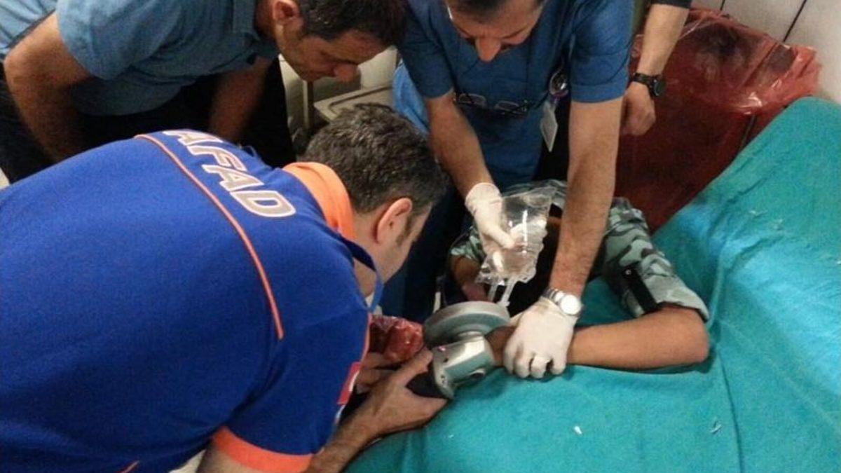 Van’ın Çatak ilçesinde parmağına yüzük sıkışan 15 yaşındaki gencin imdadına Van Afet ve Acil Durum Müdürlüğü (AFAD) ekipleri yetişti.Edinilen bilgiye göre, Mazlum A. (15) isimli gencin parmağına taktığı çelik yüzük sıkışınca yakınları tarafından Çatak Devlet Hastanesine götürüldü. Burada yapılan ilk müdahalenin ardından Mazlum A., Van Bölge Eğitim ve Araştırma Hastanesine sevk edildi. Parmağına yüzük sıkıştığı ihbarını alan AFAD ekipleri, kısa sürede Van Bölge Eğitim Araştırma Hastanesine intikal ettiler. Kurtarma ekibi, Mazlum A.’nın parmağındaki yüzüğü gerekli ekipman yardımı ile yaklaşık yarım saatlik çalışma sonucu keserek çıkardı. Mazlum A., ise parmağındaki yüzüğü çıkaran AFAD ekiplerine teşekkür etti.