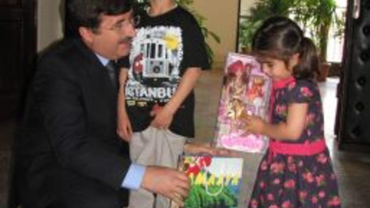 Vali Öz, Amasya Orman Bölge Müdür Yardımcısı Faruk Aykutlu ile Orman İşletme Müdürü Mustafa Kotil'in de katıldıkları ziyaretin ardından depremzede çocuklara oyuncak hediye etti.