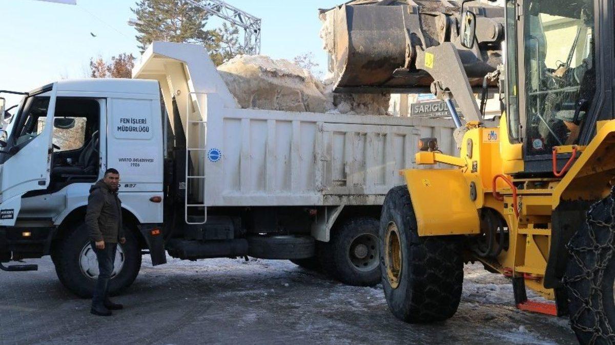 Muş’un Varto Belediyesi, etkili olan kar yağışının ardından cadde ve sokaklarda yaptığı temizleme sonra biriken karları şehir dışına taşıyor.Varto ilçesinde hayatı adeta felç eden kar yağışının ardından belediye ekipleri tarafından başlatılan kar temizleme çalışmaları tüm anayollar ve sokaklar kardan temizlendikten sonra kar nakil çalışmalarına başladı. Varto Belediyesi Destek Hizmetler Müdürü Menduh Işık, Kaymakam ve Belediye Başkan vekili Mehmet Nuri Çetin’in talimatıyla, bu sene mevsim şartlarının iyi olmasına rağmen dün yağan kar yağışının hemen ardından süratle tüm anayolları ve sokakları açtıklarını belirterek, “Ardından şehir içerisinde toplayıp biriktirdiğimiz karları kamyonlarla ilçe merkezi dışına taşıyoruz. Araçlarımız hiç durmadan karla mücadele çalışması yapıyorlar. Son yağan karın ardından temizleme çalışmalarımız kesintisiz sürüyor. 1 greyder 2 kepçe, 3 kamyon ve 4 personelle çalışıyoruz. Şu anda şehrin bazı yerlerinde topladığımız karları ilçe dışına nakil ediyoruz" dedi.