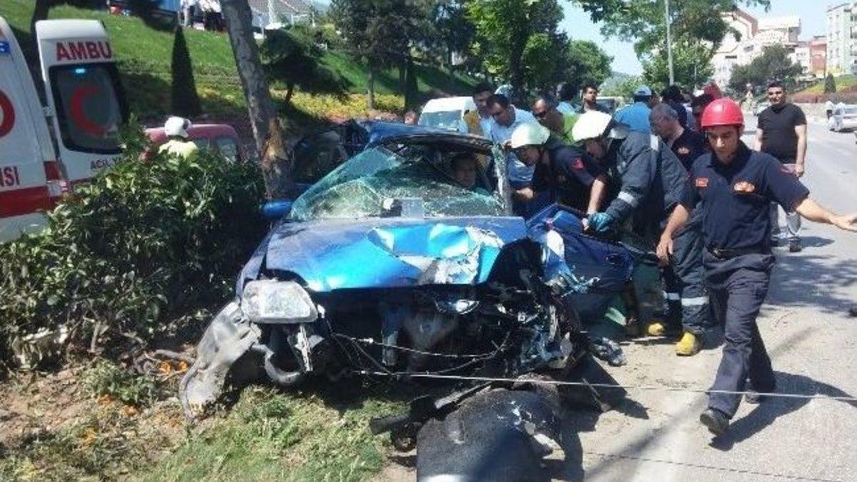 Bursa’da düğün konvoyunda meydana gelen trafik kazasında otomobil içerisinde sıkışan bir kişi güçlükle çıkartıldı. Ayrıca vatandaşları çimenlerde oturarak, kazayı merakla izlediği görüldü.Edinilen bilgiye göre olay merkez Osmangazi ilçesi Santral Garaj Mahallesi Gençosman Kavşağı’nda meydana geldi. Yakınlarına ait bir düğünde düzenlenen araç konvoyuna 16 CSG 22 plakalı aracıyla katılan Ü.G. (23) yanında bulunan arkadaşı S.B. (28) ile seyir halinde iken Mudanya istikametine gittikleri esnada şerit değiştirmek istedi. Bu esnada direksiyon hakimiyetini kaybeden Ü.G., aynı istikamete gitmekte olan C.A. (31) idaresindeki 34 HAJ 92 plakalı arabayla çarpıştı. Kazada direksiyon hakimiyetini kaybeden Ü.G. yolda dönerek önce elektrik direğine ardından yol ortasında bulunan bir ağaca çarparak durabildi. Hurdaya dönen otomobil içinde bulunan S.B. sıkıştı. İhbar üzerine olay yerine gelen itfaiye ekipleri tarafından sıkıştığı yerden yarım saat süren çalışmaların ardından kurtarılan S.B. ve otomobil sürücüsü 112 ekipleri tarafından Çekirge Devlet Hastanesi’ne götürüldü.Polis kazayla alakalı tahkikat başlattı.