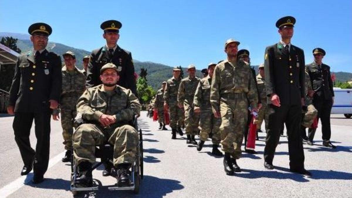 Ersan ERDOĞAN/ MANISA, Engelliler için Manisa 1'inci Piyade Eğitim Tugayı'na bağlı Albay Mehmet Arif Seyhun Kışlası'nda yemin töreni düzenlendi. Toplam 52 engelli, üzerinde Türk bayrağı serili ve G-3 piyade tüfekleri bulunan masaya ellerini koyup, yemin ederek 1 günlük de olsa vatani görevlerini yapmanın mutluğunu yaşadı. Törene Manisa Vali Yardımcısı Şerafettin Tuğ, Manisa 1. Piyade Eğitim Tugay Komutanı Tuğgeneral Yavuz Ekrem Arslan, Manisa Celal Bayar Üniversitesi Rektörü Prof.Dr. Ahmet Kemal Çelebi ve engellilerin aileleri katıldı. Yemin töreni ardından, engelli 52 askere protokol üyeleri tarafından başarı belgeleri ve ödülleri verildi. Başarı belgesi ve ödüllerinin verilmesi ardından konuşan Manisa 1'inci Piyade Eğitim Tugay Komutanı Tuğgeneral Yavuz Ekrem Arslan, "Sizler herkese nasip olmayacak üniformalarınızı giyerek ülke uğruna canınızı gerektiğinde feda edeceğinizi göstererek ant içtiniz. Sizin vatan, bayrak ve askerlik aşkıyla çarpan yüreğiniz bizleri mutlu etmektedir" dedi.