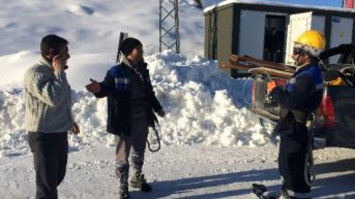 Van’ın Çatak ilçesinde kar yağışı ve fırtınadan dolayı elektrik hatlarının kopması sonucu yaklaşık 1 haftadan buyana karanlıkta kalan köylerin elektriklerini vermek için arıza ekibi, çığ tehlikesi bulunan dağlarda kopan elektrik telleri tamir ediyor.Çetin kış şartlarının yaşandığı Van’da kapalı bulunan köy ve mezra yollarının yeniden açılması için geceli gündüzlü karla mücadele çalışması devam ederken, günlerdir karanlıkta olan onlarca köye yeniden elektrik verilmesi için çalışmalar aralıksız sürdürülüyor. Van’ın Çatak ilçesine bağlı bazı köylere bölgede yoğun kar ve fırtınadan dolayı yaklaşık 1 haftadan buyana elektrik verilemiyor. Vangölü Elektrik Dağıtım AŞ (VEDAŞ) Çatak İlçe Şube Şefliği ekipleri, fırtınanın kesilmesinin ardından köylere elektrik vermek için çalışmaya başladı. Kara bata çıka elektrik direklerine gitmeye çalışan ekiler, köylülerin de eksi 25 derece soğuğa aldırış etmeden direklere çıkarak elektrik tellerini bağlayıp arızayı gidermeye çalışıyorlar.