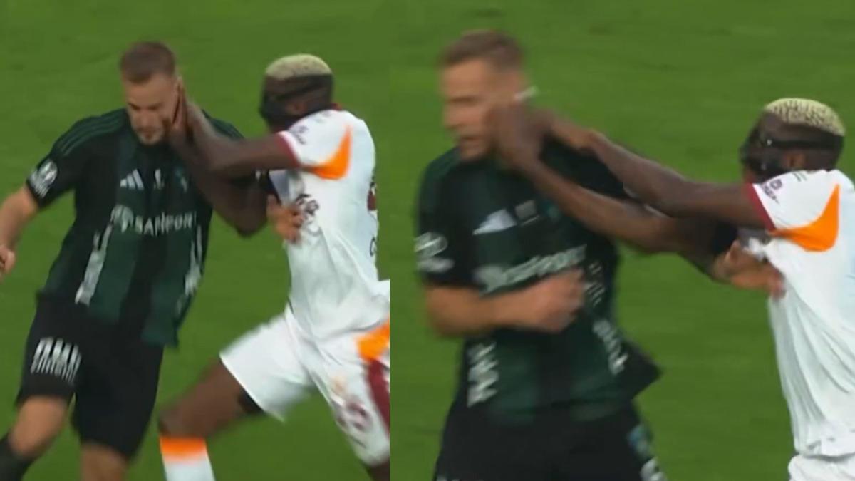 Yaşanan ikili mücadele sonrası sinirlenen Victor Osimhen, Kocaelispor oyuncusunu iki eliyle birden itti. Hakemin araya girmesinin ardından tartışma büyümeden önlendi. Mücadelenin hakemi Osimhen'e sarı kart gösterdi.