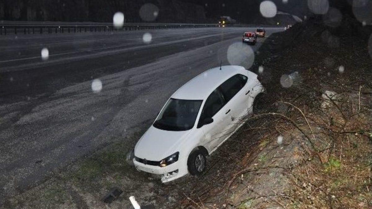 Bursa’nın İnegöl ilçesinde, virajı alamayan özel otomobil, yoldan çıkarak yamaca tırmandı. Takla atmaktan son anda kurtulan sürücünün burnu bile kanamadı.İnegöl’den Bozüyük istikametine seyir halinde olan Ümit Erol idaresindeki 34 FG 6783 plakalı özel otomobil, tünel mevkiindeki virajı dönmek isterken, yağmur sebebiyle kayganlaşan yolda kontrolden çıktı. Otomobil, yolun sağındaki yamaca çarptı. Araç katka atmaktan son anda kurtulurken, sürücü kazayı burnu bile kanamadan atlattı. Olay yerine gelen İnegöl itfaiyesi ve 112 ekipleri, kazada yaralı olmadığını öğrenince geri döndü.