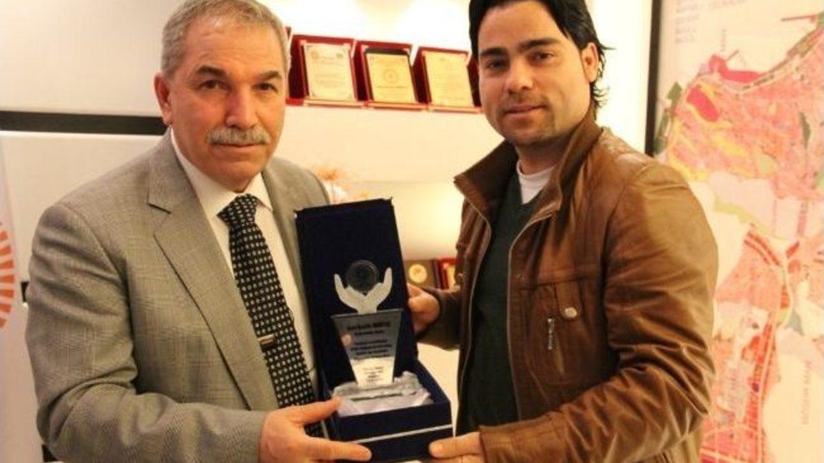 Yabancılar Pazarı Dernek Başkanı Olcay İnanç, Askıda Ekmek projesini hayata geçiren İlkadım Belediye Başkanı Necattin Demirtaş'ı çalışmalarından dolayı kutlayarak plaket takdim etti.