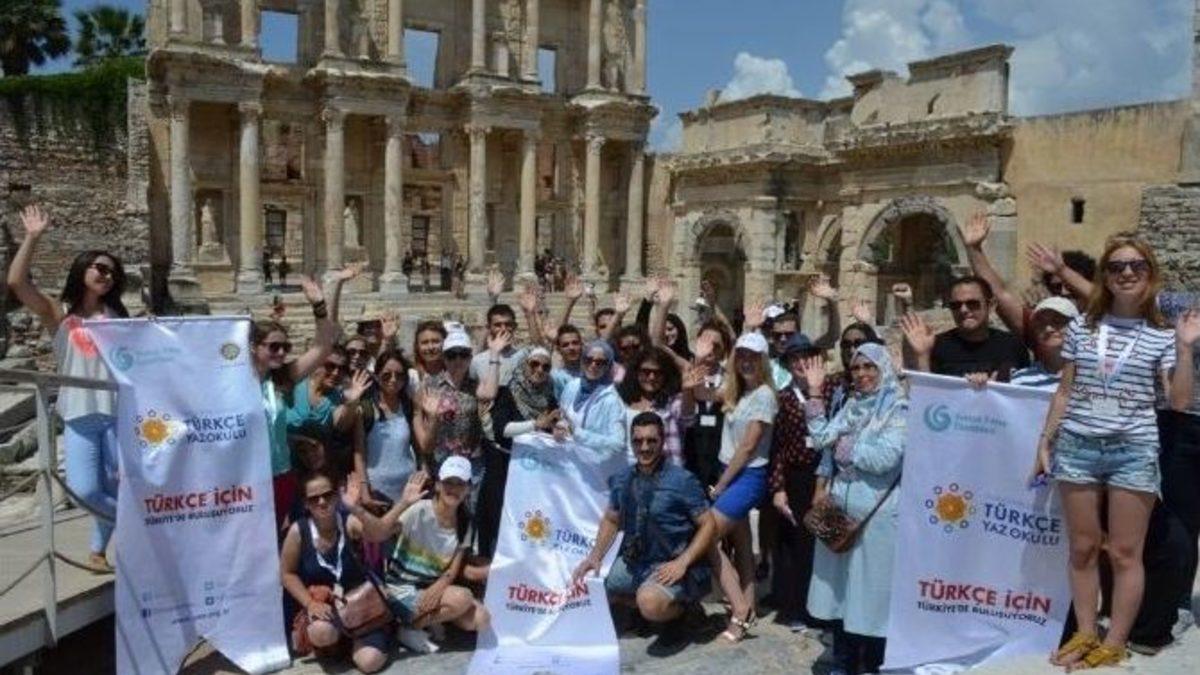 Dünyanın 31 ülkesinden Türkiye’ye gelen ve Türkçe öğrenmek isteyen 300 öğrenci, İzmir’in Selçuk ilçesindeki tarihi ören yerlerine hayran kaldı.31 ülkeden 300 öğrenci, Türkoloji Yaz Okulu eğitimi kapsamında Türkiye’ye geldi. Türkçe öğrenmek isteyen ve Türk tarihini yakından tanımak için Hollanda, Hindistan, Mısır, Rusya gibi ülkelerden gelen onlarca öğrenci, program kapsamında Selçuk ilçesindeki Meryem Ana evi, Efes Antik Kenti ve Şirince’yi gezdi. Tarihi alanlar hakkında bilgi alan öğrenciler, ören yerlerine hayran kaldı. Şifalı sudan içip, mum yakık dilek dileyen öğrenciler, tarihi alanlarda hatıra fotoğrafı çektirmeyi de ihmal etmedi.Yunus Emre Enstitüsü’nün 6 yıldır yaz okulu programı düzenlediğini belirten Kültür Merkezleri Koordinatörü Doç. Dr. Mustafa Balcı, "Türkoloji bölümlerinde Türkçe öğrenen öğrencilerimizi ve tüm katılımcılarımızı ödüllendirmek için Türkiye’ye getiriyoruz. Öğrencilerimiz ve kursiyerlerimiz ülkemizin çeşitli yerlerinde işbirliği halinde, hem Türkçe kursları görüyorlar, hem de ülkemizin güzelliklerini ve insanlarımızın değişik yönlerini tanıma fırsatı buluyorlar. Bu yıl Efes UNESCO Dünya Kültür Mirasına girdi. Bu amaçla öğrencilerimiz UNESCO’nun kabul ettiği meşhur tarihi alanımızı hem yerinde görsünler, yakından tanısınlar, hem de UNESCO’nun burayı miras listesine almasındaki isabeti yakından taktir etsinler istedik" dedi.ÖĞRENCİLER TARİHİ ALANLARA HAYRAN KALDIMakedonya’dan gelen Emela Zeliosca da, Üsküp’teki Yunus Emre Enstitüsü’ndeki başarısından dolayı Türkiye’deki yaz okuluna katıldığını ve bu geziyi çok beğendiğini belirtti. Türk Dili ve Edebiyatı bölümünü okuduğunu belirten Emela, Efes’e ilk kez geldiğini ve antik kente hayran kaldığını söyledi.Arnavutluk’tan gelen Jessika Casa ise, Türk Dili ve Edebiyat okuduğunu ve iki yıldır Türkçe öğrendiğini belirtti. Türkçeden her zaman zevk aldığını ve Türkiye’ye bu program dahilinde ilk kez geldiğini ifade eden Casa, Efes’i çok ilginç bulduğunu dile getirdi.