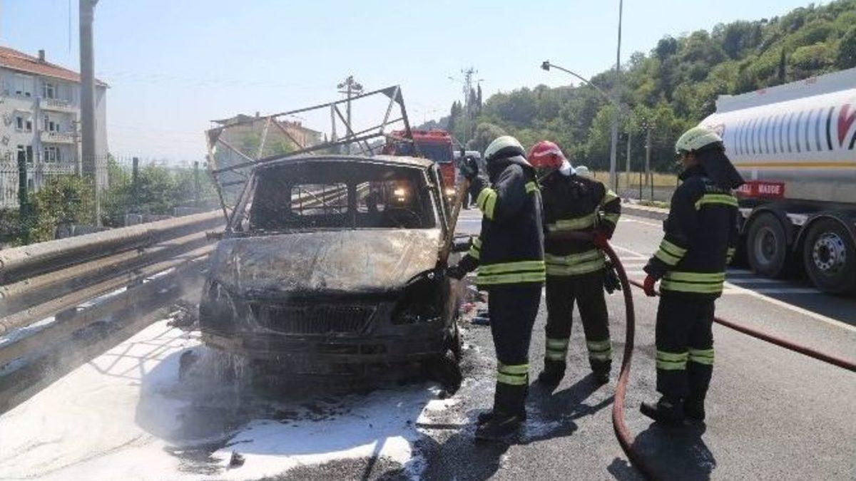 Gölcük ilçesi D-130 karayolunda yağ yüklü kamyonet seyir halindeyken alev aldı.Tamer Akkurt idaresindeki yağ yüklü 41 SS 533 plakalı kamyonet seyir halindeyken yanmaya başladı. Aracından duman yükseldiğini gören Akkurt, aracını Ulaşlı ışıklar mevkisinde durdurdu. Akkurt, araçtan inerek durumu itfaiye ekiplerine haber verdi. Yoğun trafik nedeniyle olay yerine gelmekte zorlanan itfaiye ekipleri yanan araca müdahalede bulundu. Alev topu haline gelen kamyonette çıkan yangın güçlükle söndürüldü. Kullanılamaz hale gelen aracın sürücüsü Akkurt, itfaiye ekiplerinin müdahalesini yaşlı gözlerle izledi. Yaklaşık bir saat süren çalışmaların ardından yangın tamamen söndürüldü. Yangının neden çıktığı henüz belirlenemezken polis ve itfaiye ekipleri olayla ilgili soruşturma başlattı.