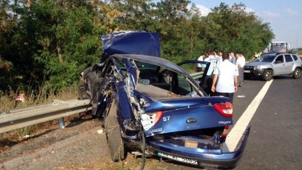 Tekirdağ’ın Çorlu ilçesinde sürücüsünün direksiyon hakimiyetini kaybettiği otomobil bariyerlere çarptı. Otomobilde bulunan ve yakınlarının düğününe giden biri çocuk toplam 6 kişi yaralandı.Kaza, TEM otoyolu Çorlu gişeler mevkiinde meydana geldi. İstanbul’dan Kırklareli’nin Lüleburgaz ilçesindeki yakınlarının düğününe gitmek üzere yola çıkan Mesut Yaman yönetimindeki 34 AL 5065 plakalı otomobil, Çorlu gişeler mevkii Namık Kemal Viyadüğü’nde geldiği sırada sürücünün direksiyon hakimiyetini kaybetmesi sonucu yolun sağında bulunan bariyerlere hızla çarptı. Çarpmanın etkisiyle otomobilde bulunan sürücü Mesut Yaman, Saniye Yaman, Nazile Yaman, Nefiye Bal, Hamza Bal ile 6 yaşındaki Emir Bal yaralandı. Yaralılar olay yerine gelen ambulanslar ile Çorlu Devlet Hastanesi’ne kaldırılarak tedavi altına alındı. Kaza ile ilgili olarak başlatılan soruşturma devam ediyor.
