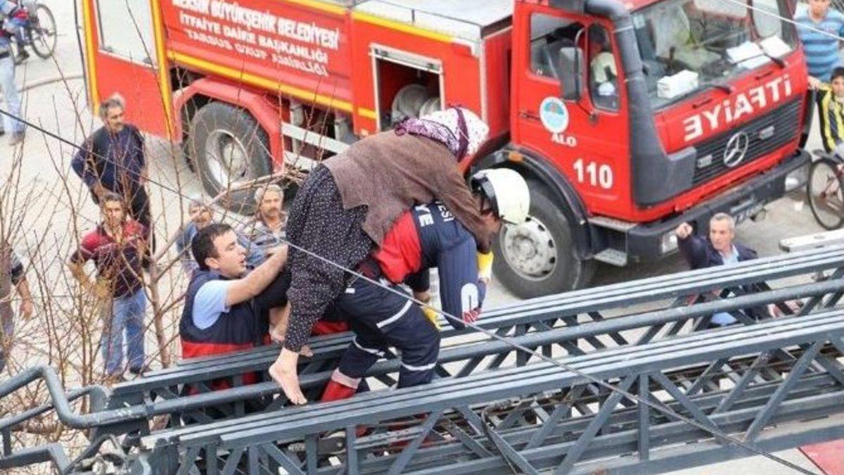 Mersin’in Tarsus ilçesinde 3 katlı bir binada çıkan yangında, evin balkonunda mahsur kalan yaşlı kadın, itfaiye ekiplerince kurtarıldı.Edinilen bilgiye göre, Tarsus ilçesi Yaramış Mahallesi 39116 Sokak’ta bulunan 3 katlı bir binanın son katında yangın çıktı. Elektrik kontağından çıktığı sanılan yangın, kısa sürede evin büyük bölümünü etkisi altına aldı. Yangın sırasında evde yalnız olan 75 yaşındaki Nurgül Hızal, alevlerden ve yoğun dumandan korunmak için balkona sığındı.Yangına, Tarsus Grup Amirliği’ne bağlı itfaiye ekipleri müdahale etti. Binanın hemen yanından geçen elektrik tellerinin balkona yakın olması ve elektriklerin kesilmemesinden dolayı zor anlar yaşayan itfaiye ekipleri, sığında balkonda korkudan göz yaşı döken yaşlı kadını kurtarmak için seferber oldu. Ekipler, uzun uğraşlar sonucu merdivenli araçla ulaştığı balkondaki Nurgül Hızal’ı kurtarmayı başardı. İtfaiye eri tarafından sırtına alınarak binadan indirilen yaşlı kadın, yakında bekleyen ambulansa götürüldü.Evde maddi hasara yol açan yangının çıkış nedeninin araştırıldığı bildirildi.