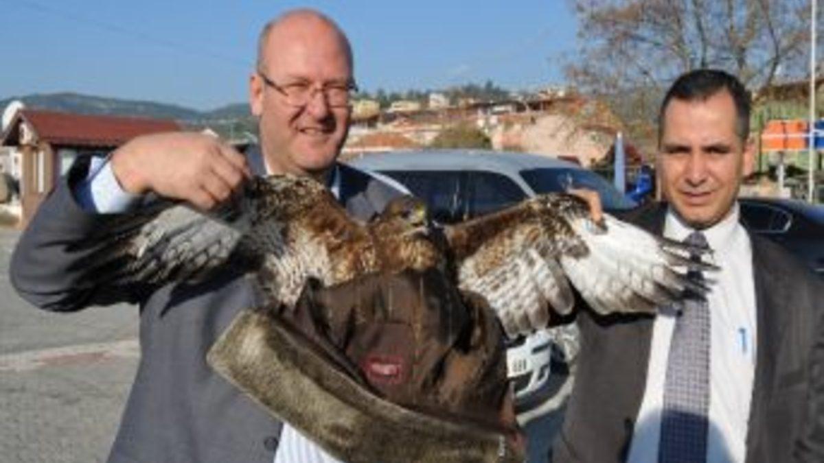 Küçükkuyu Belediyesi Fen İşleri Müdürlüğü'nde görevli Musa Ören, inşaat denetlemeleri sırasında yaralı bir şahin buldu. Ören, “Ağaçlar arasında yerde bulduğumuz şahini köpekler, kediler parçalamasın diye alıp veterinere getirdik. Şahinin tedavisi tamamlandı. Uçacak hale geldiği için yine tabiata saldık” dedi.