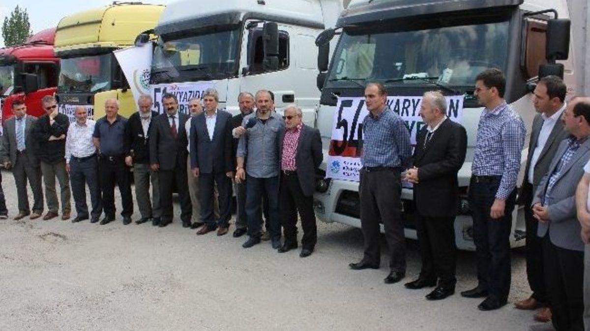 SAKARYA (İHA) – Sakarya’da İnsan Hak ve Hürriyetleri (İHH) İnsani Yardım Vakfı’nın organizesinde halk tarafından toplanan yardım malzemeleri, dualarla Suriye’ye gönderildi.Sakarya Büyükşehir Belediyesi İtfaiye Daire Başkanlığı'nın bahçesinde düzenlenen törenle Sakarya halkının topladığı bin ton un, 150 ton gıda malzemesi ile 2 bin parça giyim eşyası, 6 TIR'la yapılan dualarla Suriye’ye gönderildi.