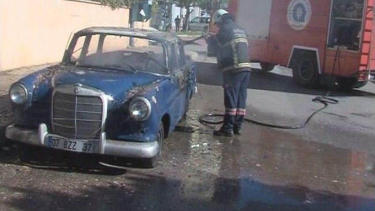 Antalya'da, bakım için sanayi sitesine bulunan 1965 model klasik Mercedes otomobil, henüz belirlenemeyen bir nedenle yanarak kullanılamaz hale geldi.Olay, saat 10.30 sıralarında Cumhuriyet Mahallesi 676'ncı Sokak'ta meydana geldi. Edinilen bilgiye göre, arabanın sahibi tarafından bakımı yapılması için Eski Sanayi'ye getirilen araç henüz bilinmeyen bir sebepten alev aldı. İtfaiye ekipleri yanan aracı söndürebilmek için alevlere basınçlı suyla müdahale etti. Rüzgarın etkisiyle her yanı saran alevler otomobili kullanılamaz hale getirdi. Görgü tanıklarının ifadesine başvuran polis, aracın sahibine ulaşmaya çalıştı. Özenle bakıldığı belirtilen yarım asırlık otomobil, dakikalar içinde kül oldu.Görgü tanığı Hüseyin Güven, 1965 model klasik Mercedes otomobilin yanından geçen minibüsün ardından yanmaya başladığını söyledi. Güven, “Ben motosiklet sürüyordum. Motosikleti sürerken aracın yanından geçen bir minibüs gördüm. Ondan sonra arabanın tutuştuğunu gördüm birden. Tam olarak görmedim ama minibüs geçtikten sonra araç yanmaya başladı. Aracın sahibini tanımıyorum ama araç uzun zamandan beri burada. Herhalde tamir için bıraktılar bilmiyorum” dedi.