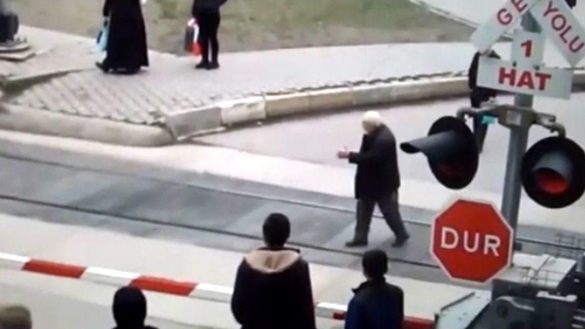 Karabük kent merkezinden geçen demir yolunun kapalı bariyerlerine aldırış etmeden karşıya geçmeye çalışan yaşlı bir adam yürekleri ağza getirdi. Hemzemin geçitte görevli TCDD personelinin dikkati sonrası yaşlı adam yük treni altında kalmaktan son anda kurtarıldı.Karabük’ün Balıkpazarı mevkiinde bulunan hemzemin geçidinde yaşanan olay güvenlik kamerasına saniye saniye yansıdı. Görüntüde, elinde baston bulunan yaşlı bir adam, ikaz işaretleri ve kapalı bariyerlere aldırış etmeden raylara ilerliyor. Bu sırada hızla yaklaşan yük trenin makinisti, yaşlı adamı fark edince siren çalıyor. Sirenleri duyan yaşlı adam bu duruma kızarak el hareketleriyle makiniste tepki gösteriyor. Bu sırada hemzemin geçitte görevli TCDD personeli koşarak yaşlı adamı raylardan alarak trenin altında kalmaktan kurtarıyor.