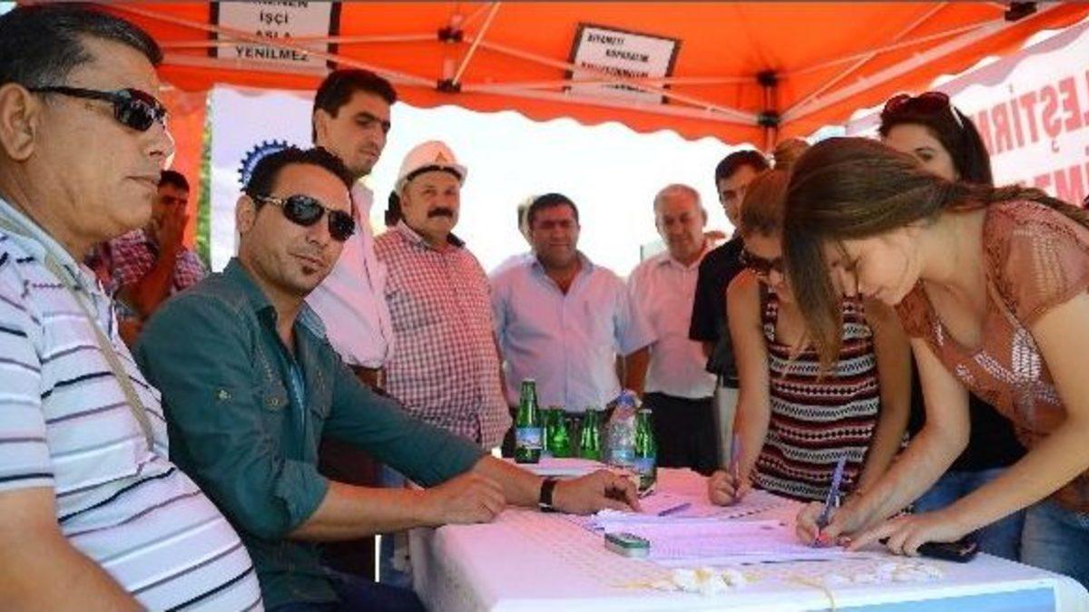 Tes-İş ve Maden-İş Sendikaları Yatağan Şubeleri tarafından ilçe merkezindeki Madenci Heykeli önünde açılan “Özelleştirmeye inat, bir imzada sen at” kampanyasına halkın her kesiminde büyük destek geldi.2 yaşındaki Berrak isimli minik emekçi babasıyla imza standına gelirken, köyden imza kampanyasına destek için gelen 77 yaşındaki Mehmet dede enerji ve maden işçilerinin gönüllerini fethetti. Ülkenin düşman işgalinden kurtarılırken verilen mücadeleleri hatırlatan Mehmet Dede, “Bu ülke kolay kazanılmadı, öyle kolay da satılamaz” diye konuştu.Maden-iş Sendikası Şube Başkanı Süleyman Girgin ve Tes-iş Sendikası Şube Başkanı Fatih Erçelik, özelleştirmeyle mücadele kapsamında hazırladıkları eylem planı kapsamında çalışmalarını sürdürdüklerini belirterek halktan gelen büyük desteğin kendilerini son derece mutlu ettiğini ifade ettiler. Yasaların izin verdiği şekliyle özelleştirmeye karşı verdikleri mücadeleyi sonuna kadar sürdüreceklerinin alını çizen Girgin ve Erçelik, “Umarız bir an evvel bu yoldan geri dönülür ve istenmeyen olaylar yaşanmaz. Çıktığımız bu yolda sonuç alana kadar mücadele etmeye kararlıyız” dediler.