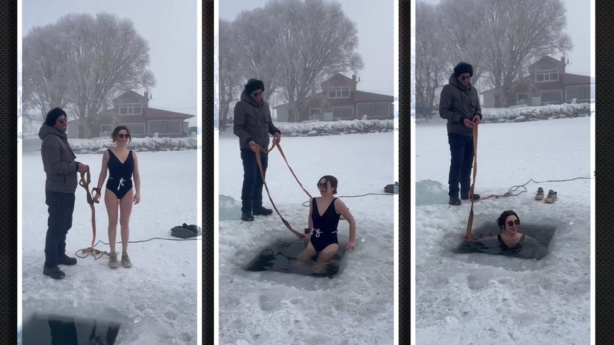 Her gün yüzlerce turistin ziyaret ettiği Çıldır Gölü, ilginç görüntülere sahne oluyor. Bir kadın Çıldır Gölü'nde buzlu suya girerek yaklaşık 30 saniye suyun içerisinde kaldı. O anlar soysal medyada viral oldu.