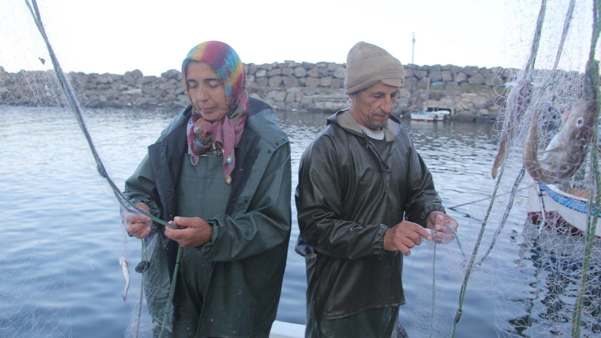 Bahar Demir isimli kadın balıkçı, kendisinin denize açılmasa da kıyıda her gün eşine yardım ettiğini belirterek, "Bizim okula giden çocuklarımız var, onları hazırlayıp saat 06.00 gibi buraya geliyorum. Burada ağ temizliyoruz. Balıkları ağlardan temizliyoruz ve istif alıp, bir sonraki ava hazırlıyoruz. Balıkçılık zor, soğuk havalarda daha da zor. Bazen soğuktan ellerimiz bile tutmuyor ama herkes ekmeğinin peşinde" diye konuştu.