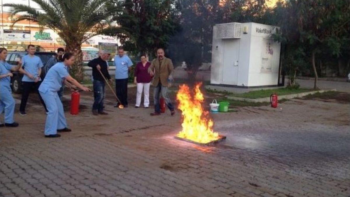 Marmaris Özel Ahu Hastanesi personeline yangın söndürme eğitimi verildi.Muğla Büyükşehir Belediyesi İtfaiye Amirliği tarafından, Ahu Hastanesi çalışanlarına yönelik yangın tatbikatı düzenlendi.İtfaiye yetkilileri , tatbikatta ilk olarak hastane bahçesinde toplanan personele, olası bir yangın durumunda neler yapılması gerektiğini anlattı. Yangın anında hastaların nasıl tahliye edilmesi gerektiğini gibi konularda bilgiler verilen eğitimde, itfaiye görevlilerince bir varil içerisinde çıkartılan yangın, yangın tüpleriyle hastane personeli tarafından söndürüldü.Bu tür eğitimleri düzenli olarak verdiklerini ifade eden, İtfaiye yetkilileri, insanların yoğun olarak bulunduğu hastane ve okul gibi yerlere daha fazla önem verdiklerini kaydetti.