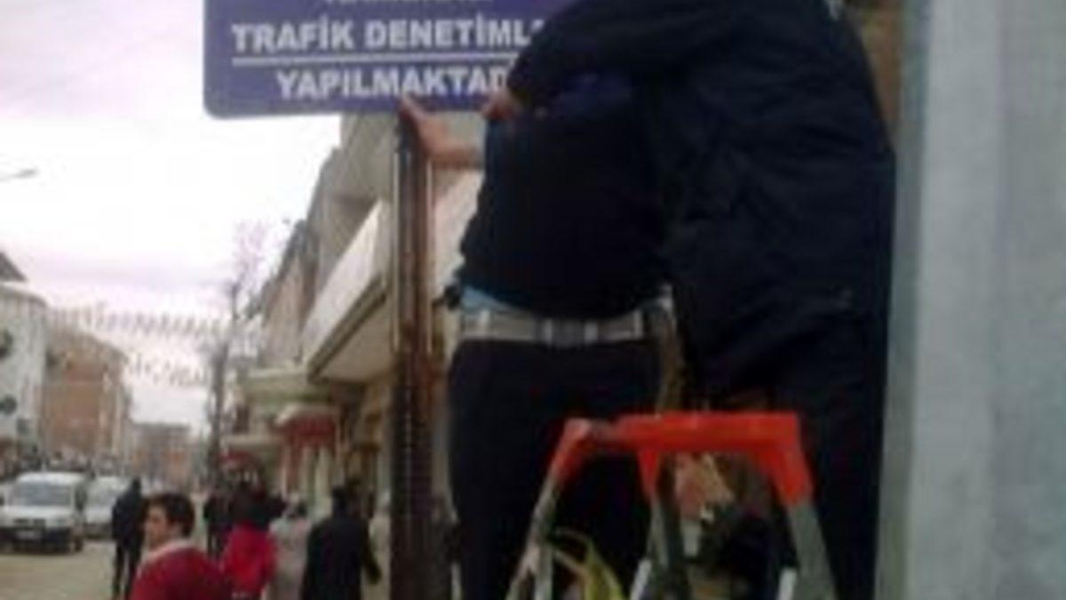 Yozgat’ın Yerköy ilçesinde sürücü hataları cadde ve sokaklara kurulan mobese kameraları sayesinde tespit edilecek. Bedri Aydın Caddesi'ndeki mobese kameralarının vatandaşlar ve sürücüler tarafından fark edilmesi için yol kenarına uyarı levhası asıldı. Levhada, 'Dikkat kameralı trafik denetimleri yapılmaktadır' yazıyor.